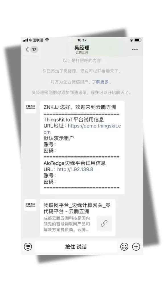 第二步:添加之后,预计等待5秒,客服机器人自动发送演示信息