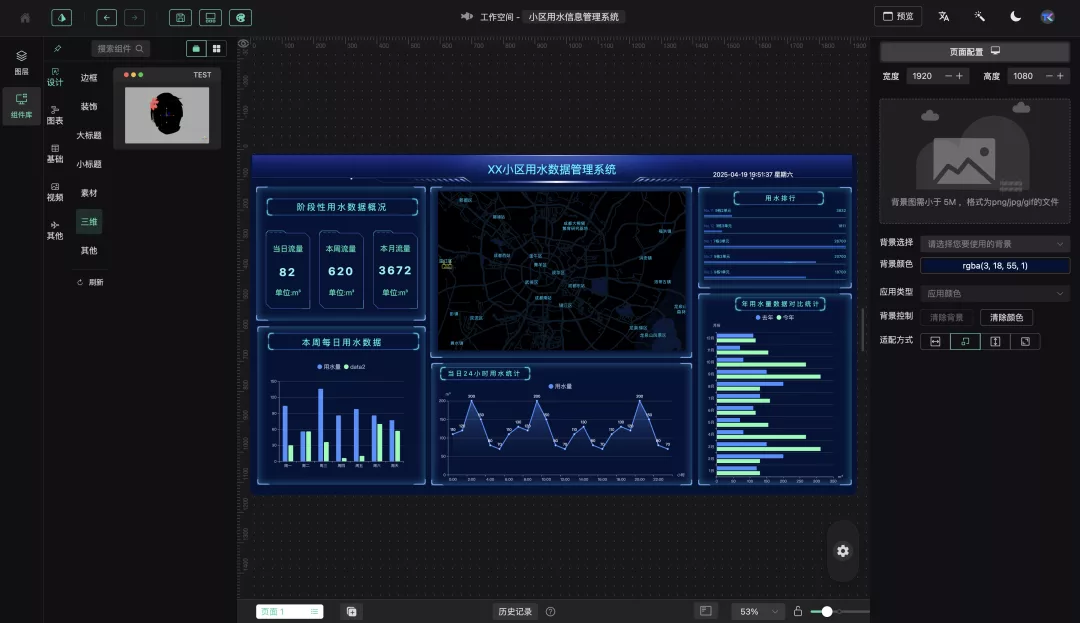 高性能渲染:采用 Web 技术栈,利用 Canvas 和 SVG 实现高效的数据渲染,确保在高分辨率大屏上的流畅展示。