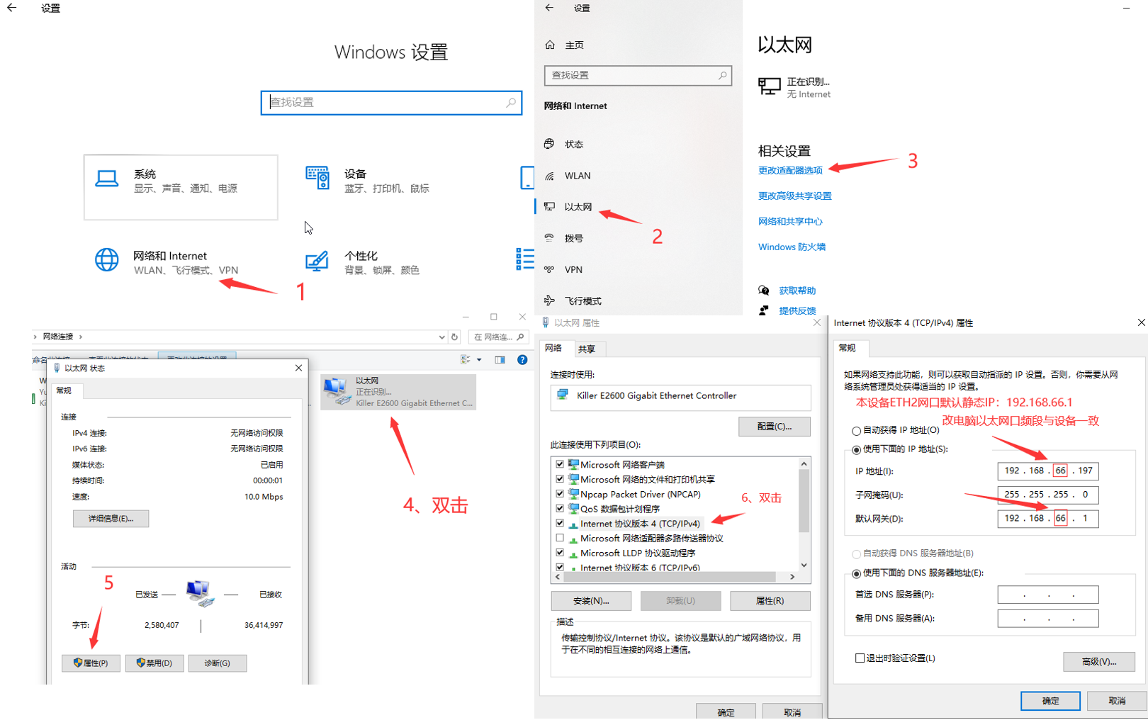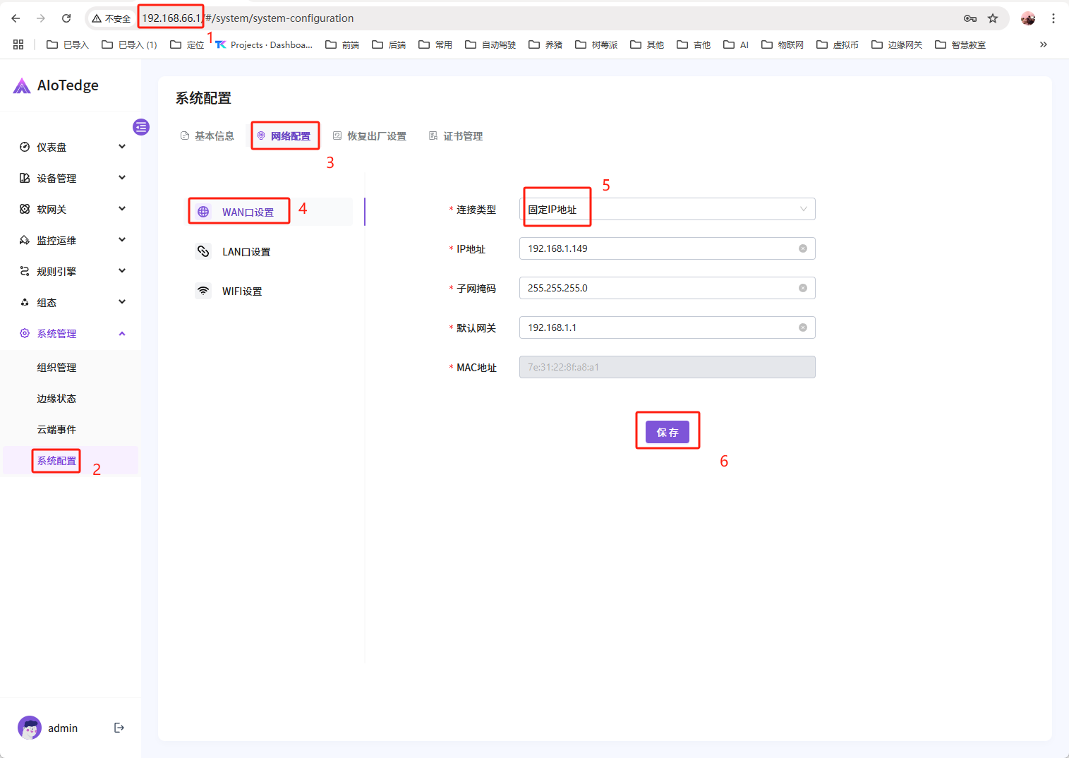 PS:初次通过该以太网口访问默认静态IP:【192.168.66.1】
