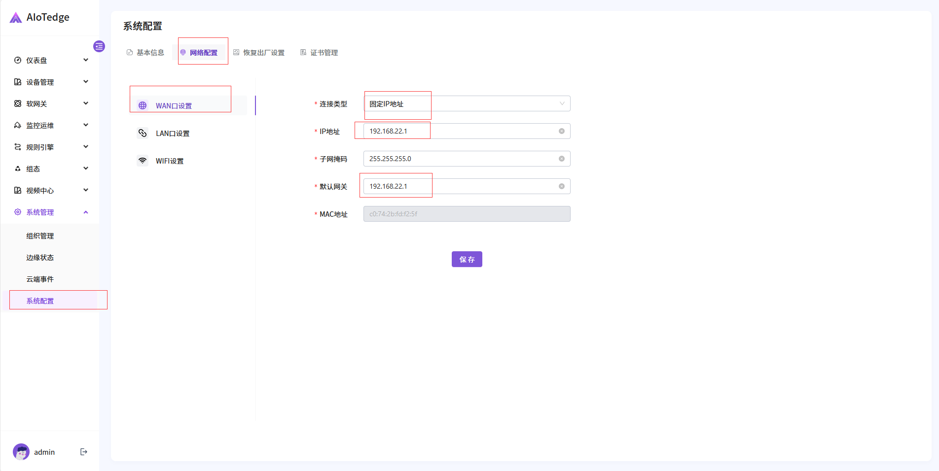 配置需将电脑和设备的ETH2(LAN)网口IP设置成同一个IP地址段,否则设备与电脑无法通信。
