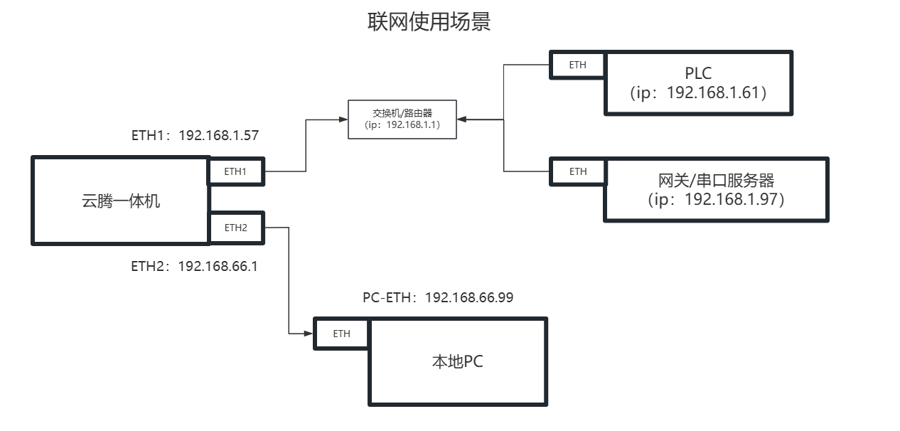2-5-2、当云腾一体机独立连接网关/设备使用时: