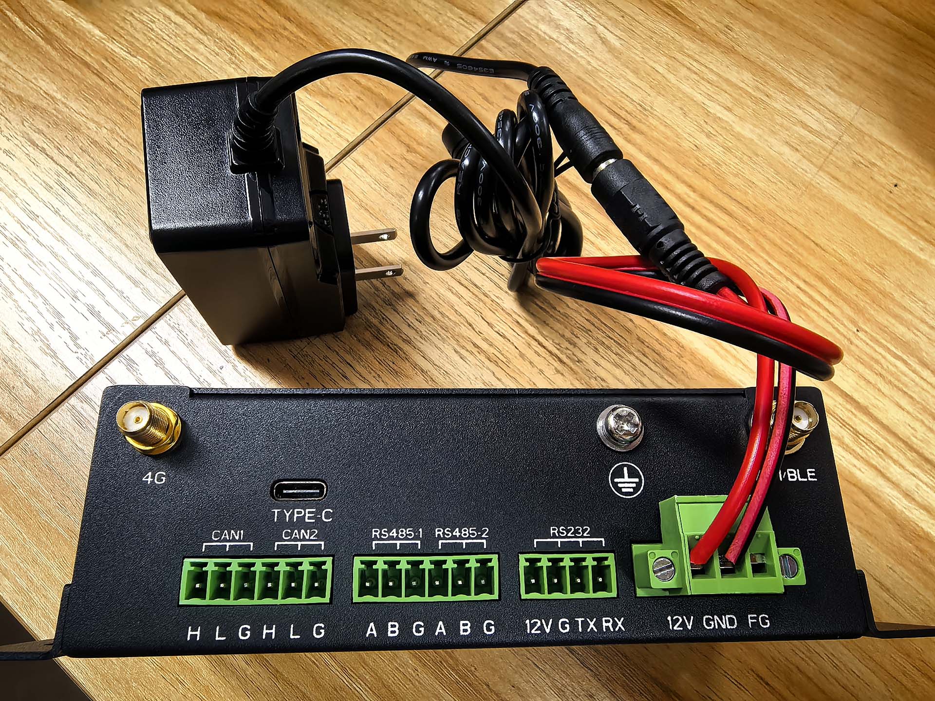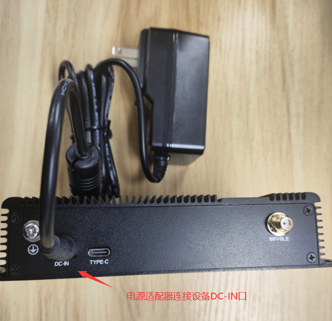 使用边缘计算盒子产品提供的专用电源适配器连接到设备【DC-IN】口: 【下图为T2000电源接入】