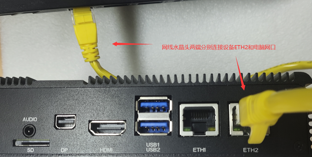 接线:用以太网网线将【电脑网口】和【设备的ETH2网口】相连,