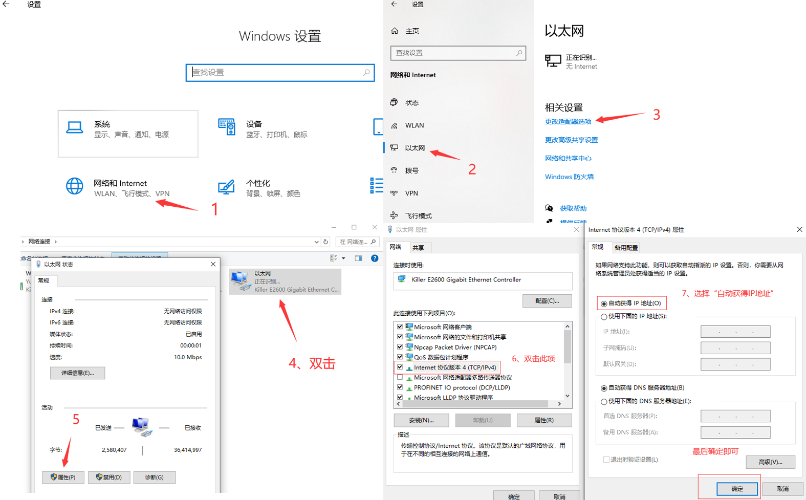 接线完成、通电启动设备后,更改电脑以太网口IP配置如下:
