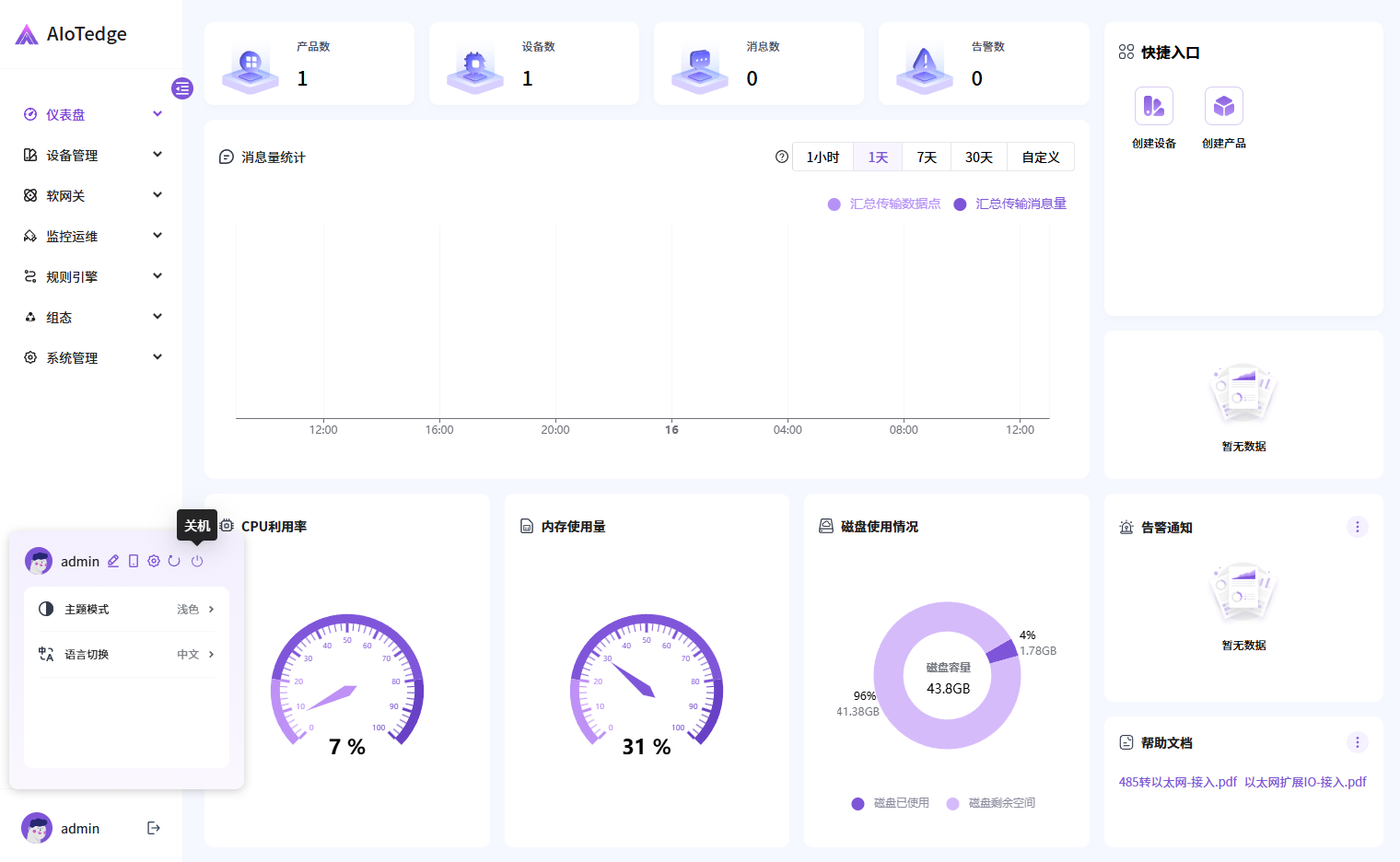 2-4、登录ThingsKit Edge【默认独立运行,不接云端】