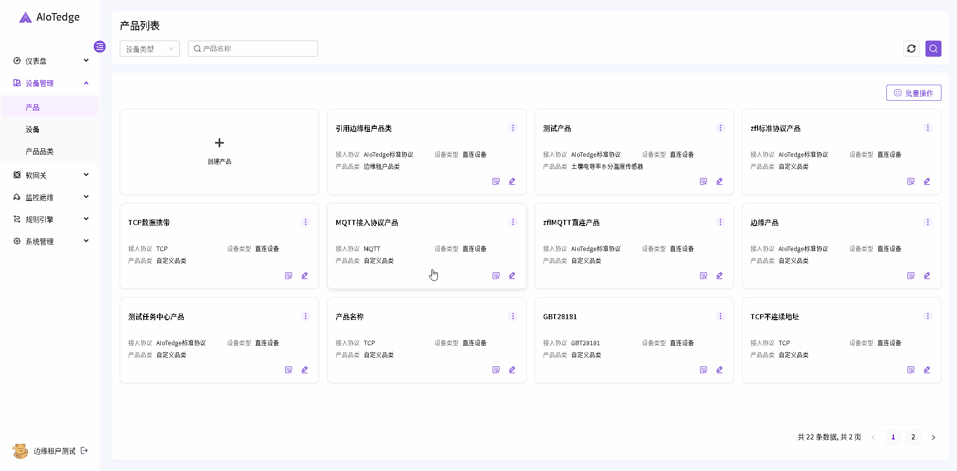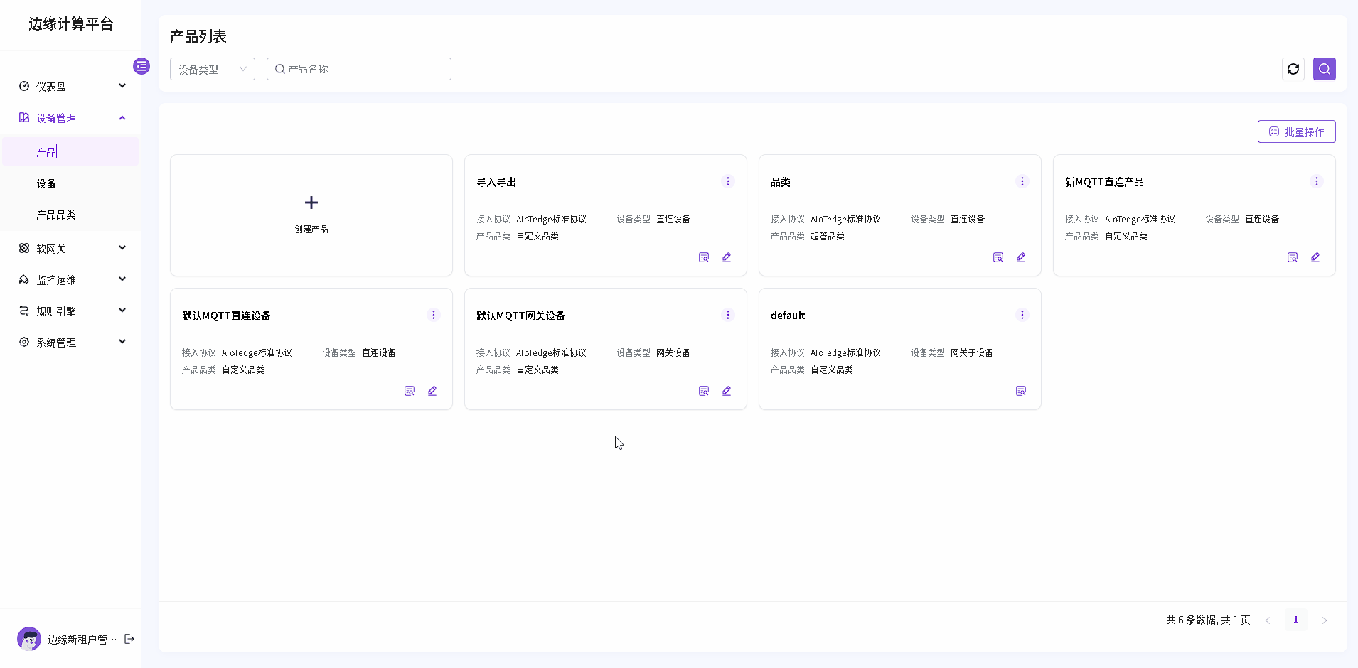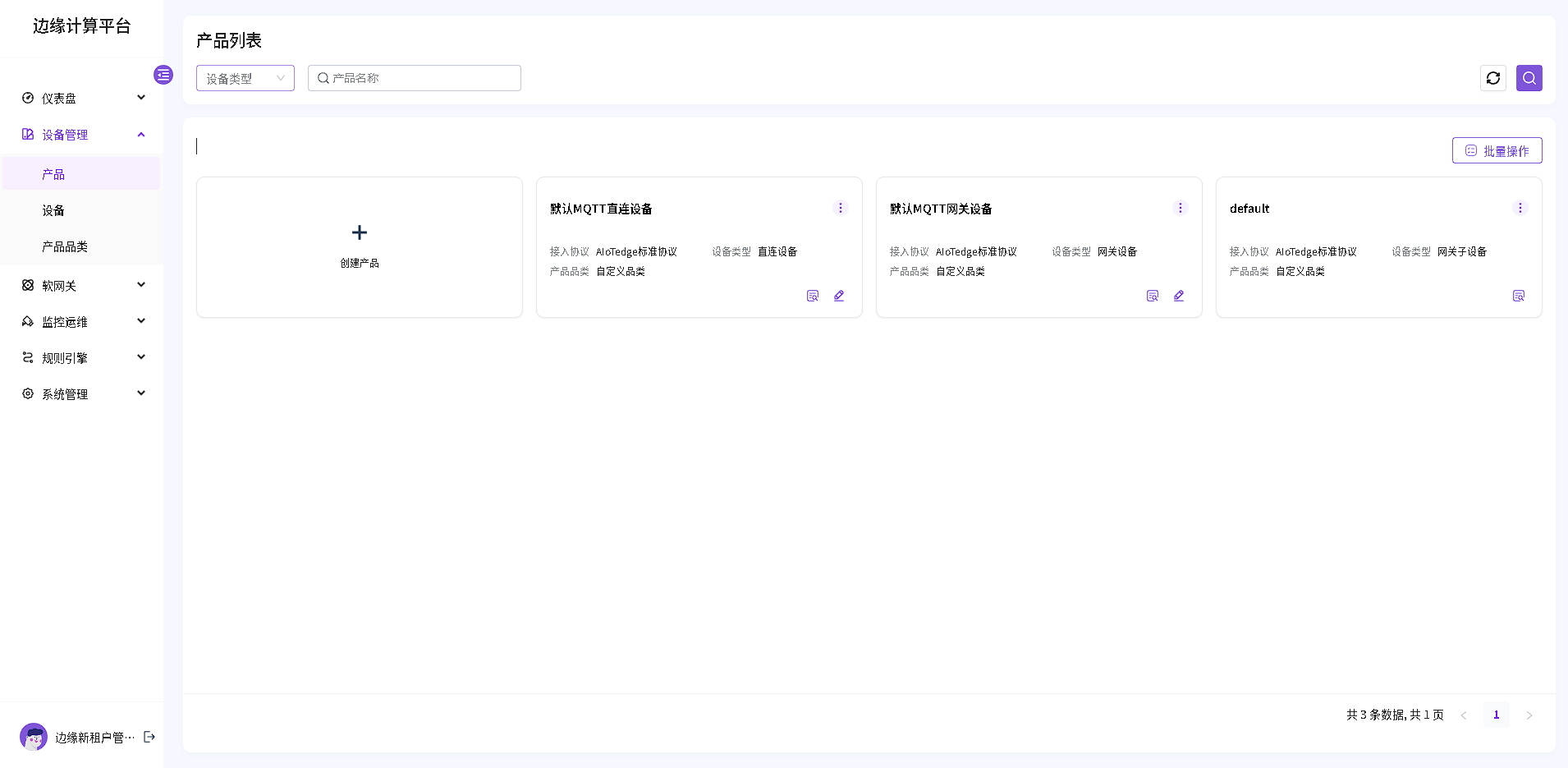 💡 提示 :新环境登录有三条默认的产品数据(三种协议各一条产品)。
