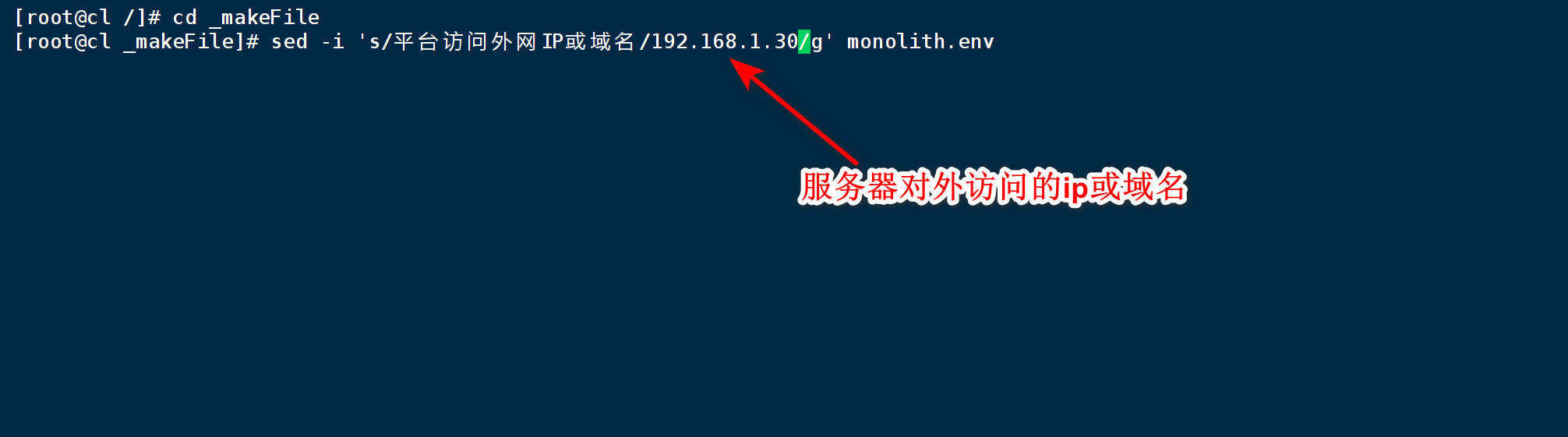 sed -i 's/平台访问外网IP或域名/XXX/g' monolith.env