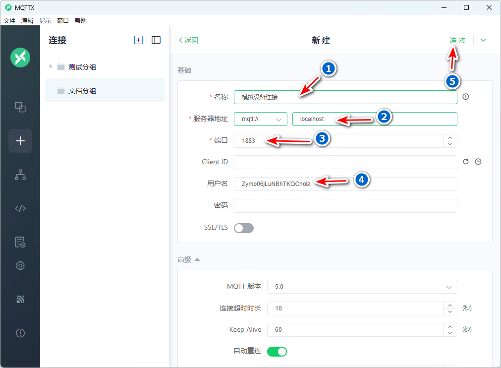 MQTTX模拟连接
