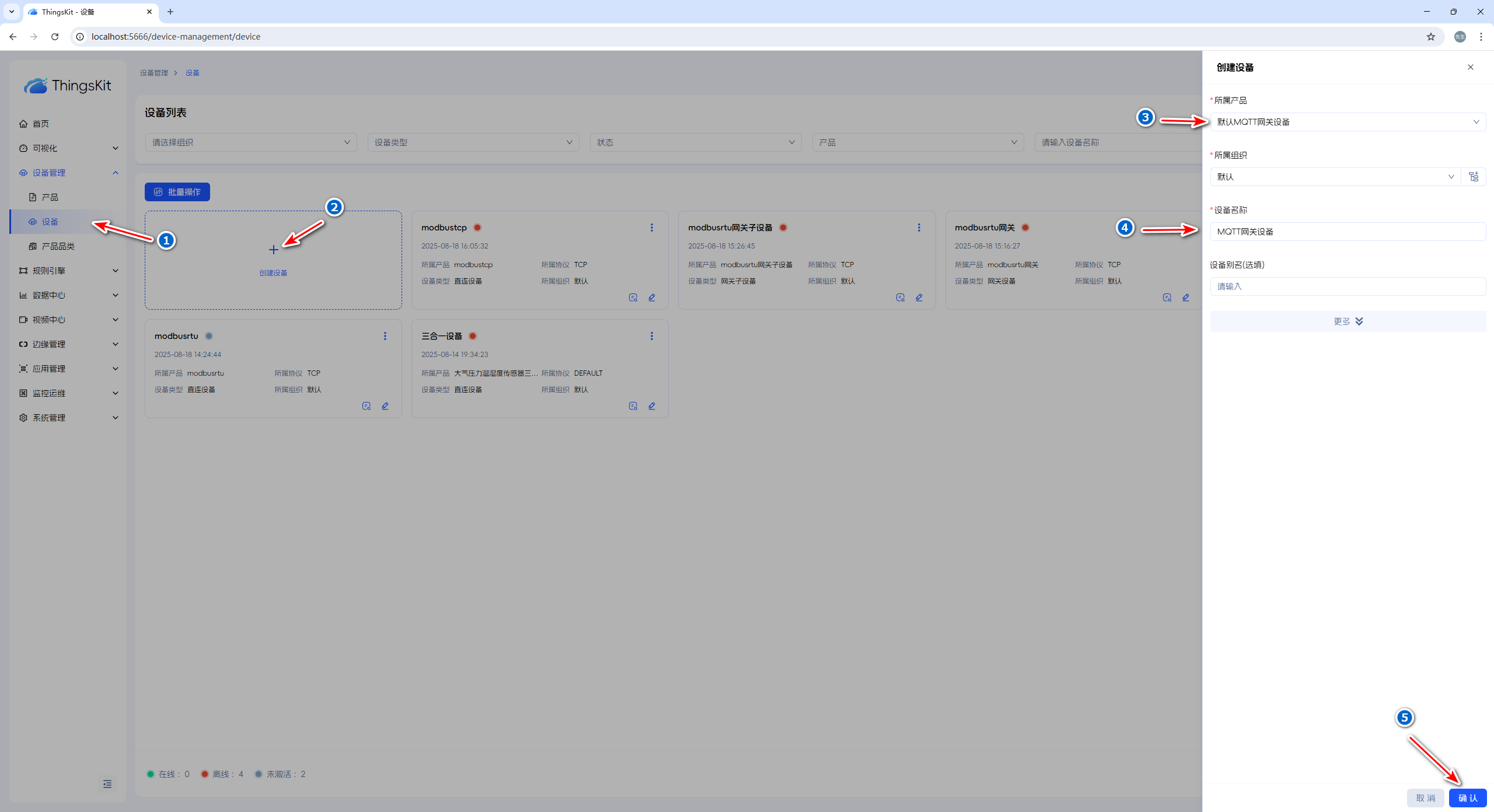 选择的是Default或者MQTT协议的产品即可创建MQTT网关和直连设备。