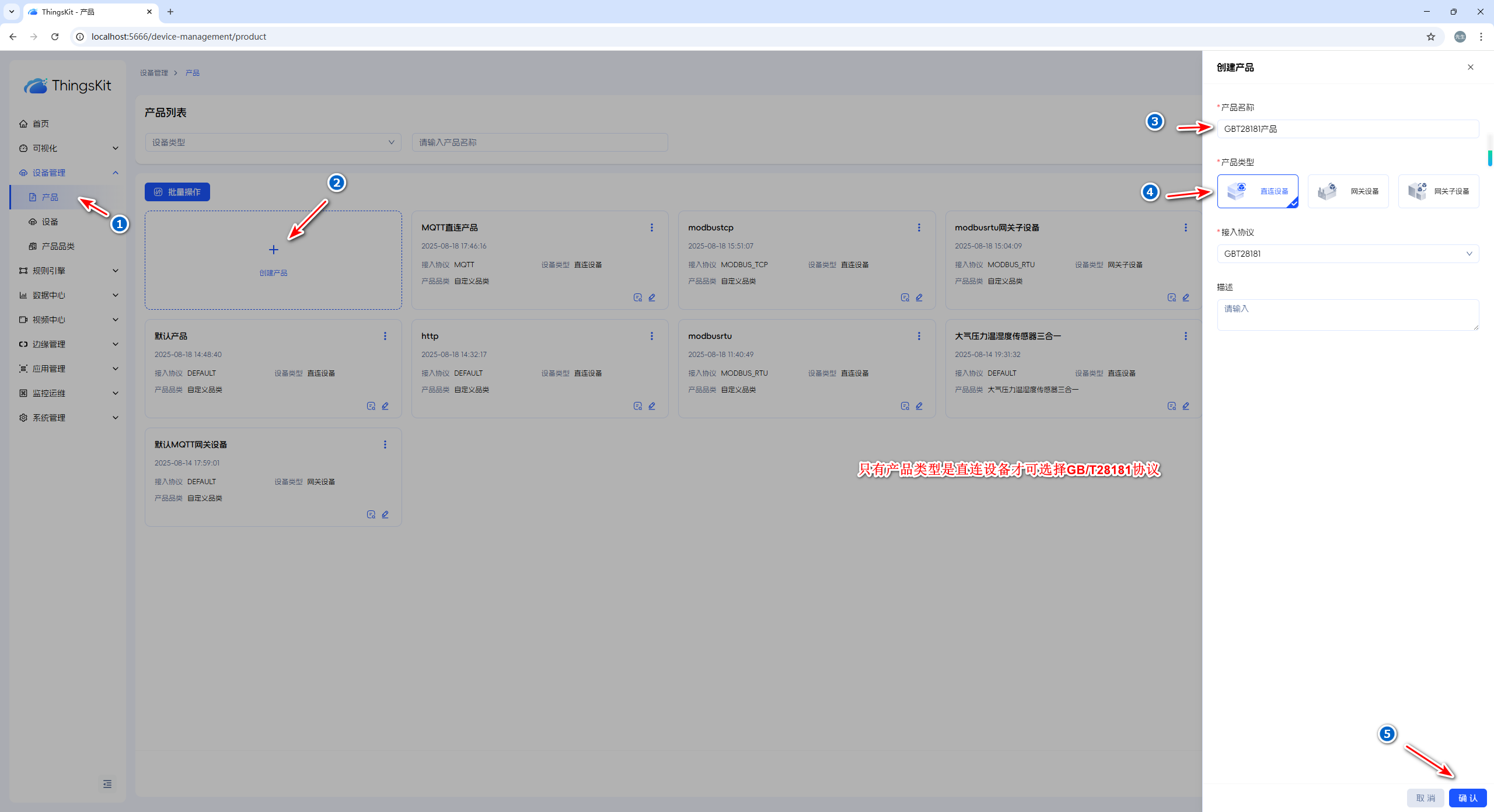 GBT28181协议摄像头接入在前需要在平台上创建对应的设备,所以需要创建一个产品,后续创建GBT28181协议摄像头设备用这一个产品就可以了。