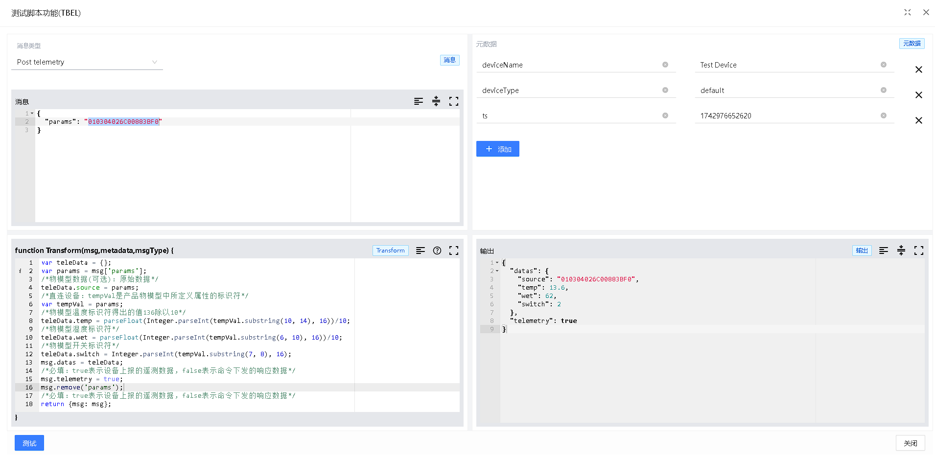 数据上报到平台,则需要通过平台提供的转换函数进行,转码解析处理。