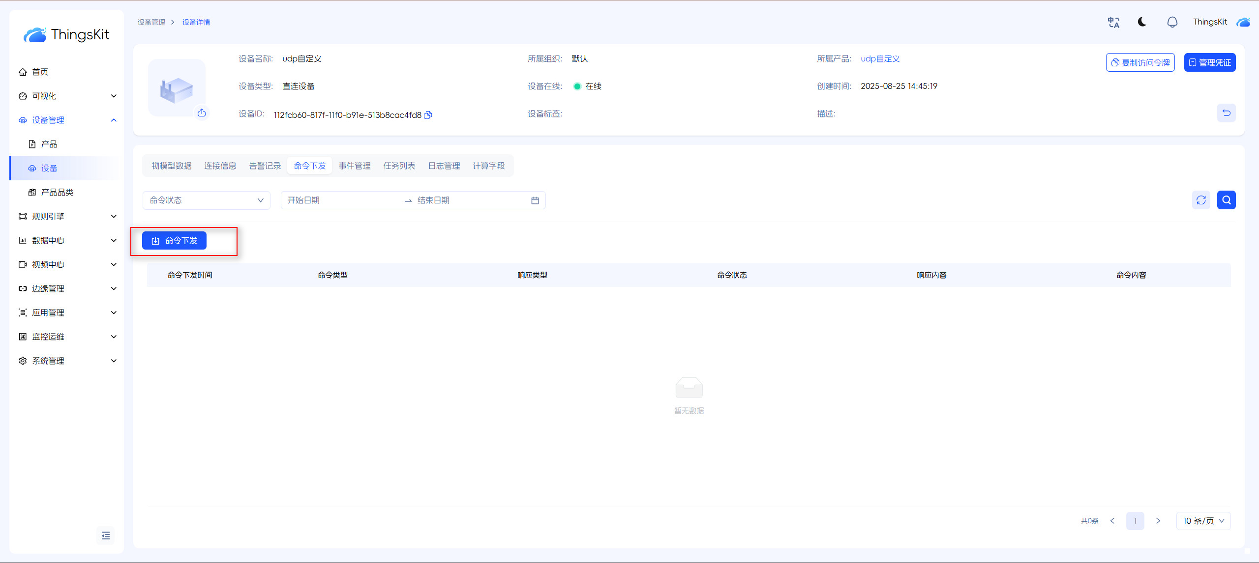接下来就是平台下发命令到设备端自定义数据,可以通过如下方式: