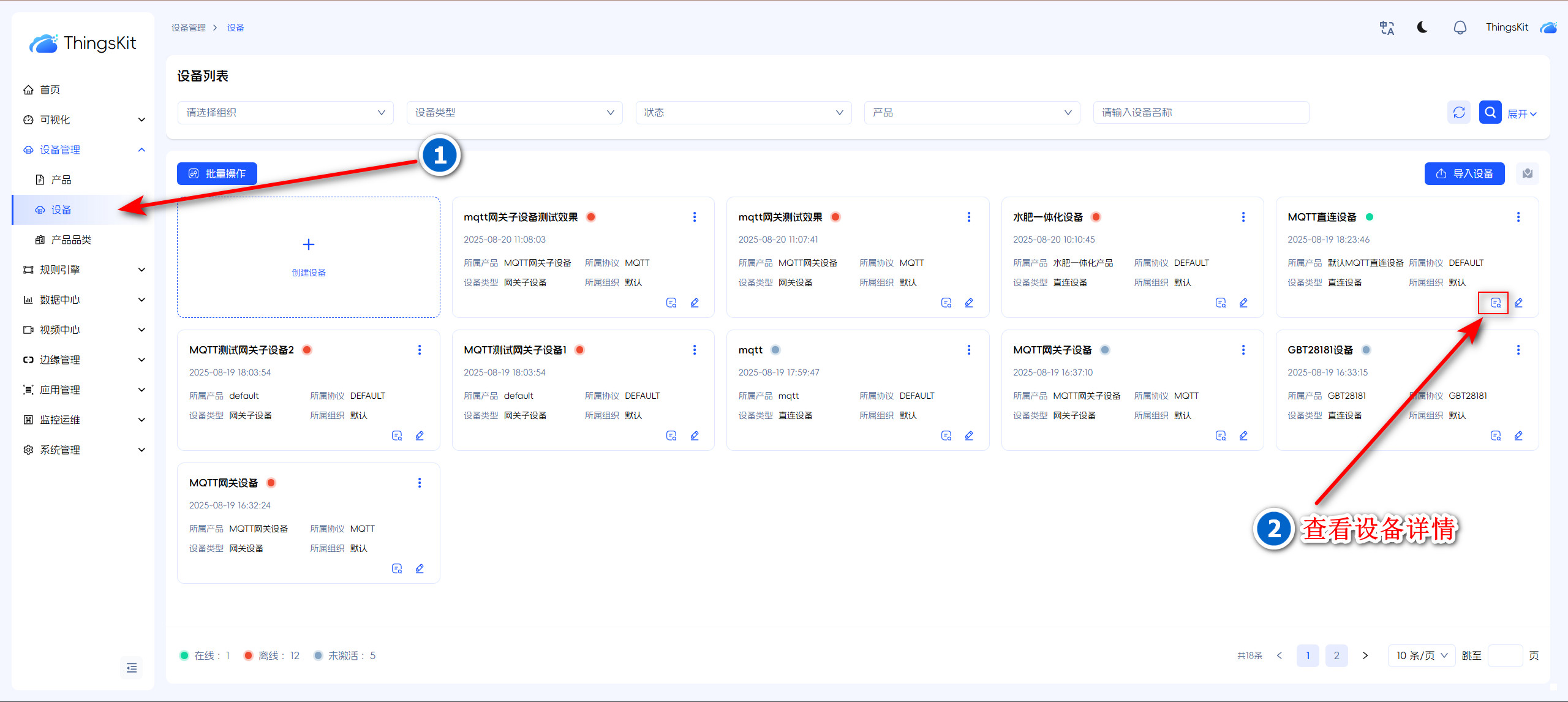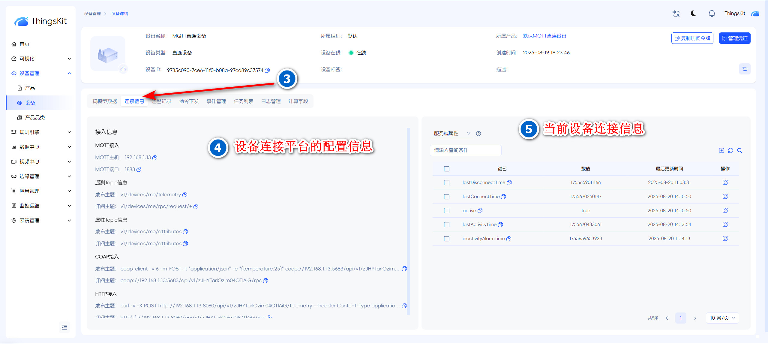 可以通过查看设备连接信息了解设备连接到平台时的一些关键信息。