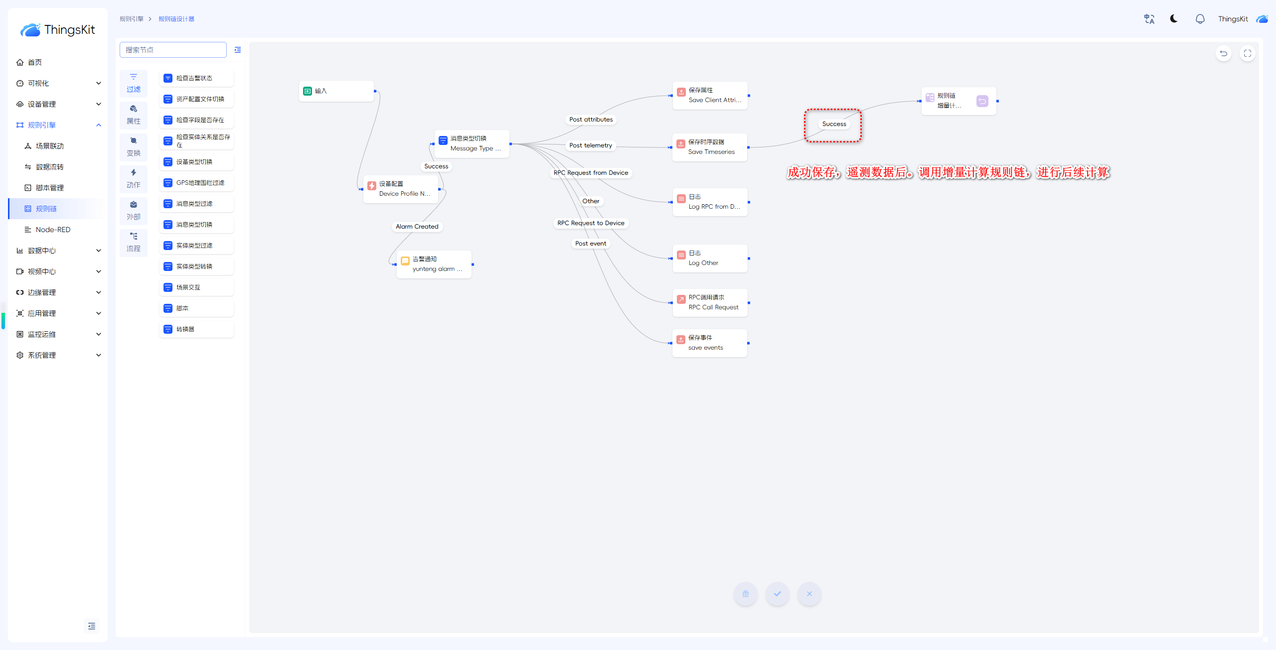 规则链是系统平台核心,每个设备与规则链都有不可分割的关系。建议:设备在比较多或者比较杂的情况下,创建多个不同的规则链来进行数据处理,减少默认规则链的处理压力。