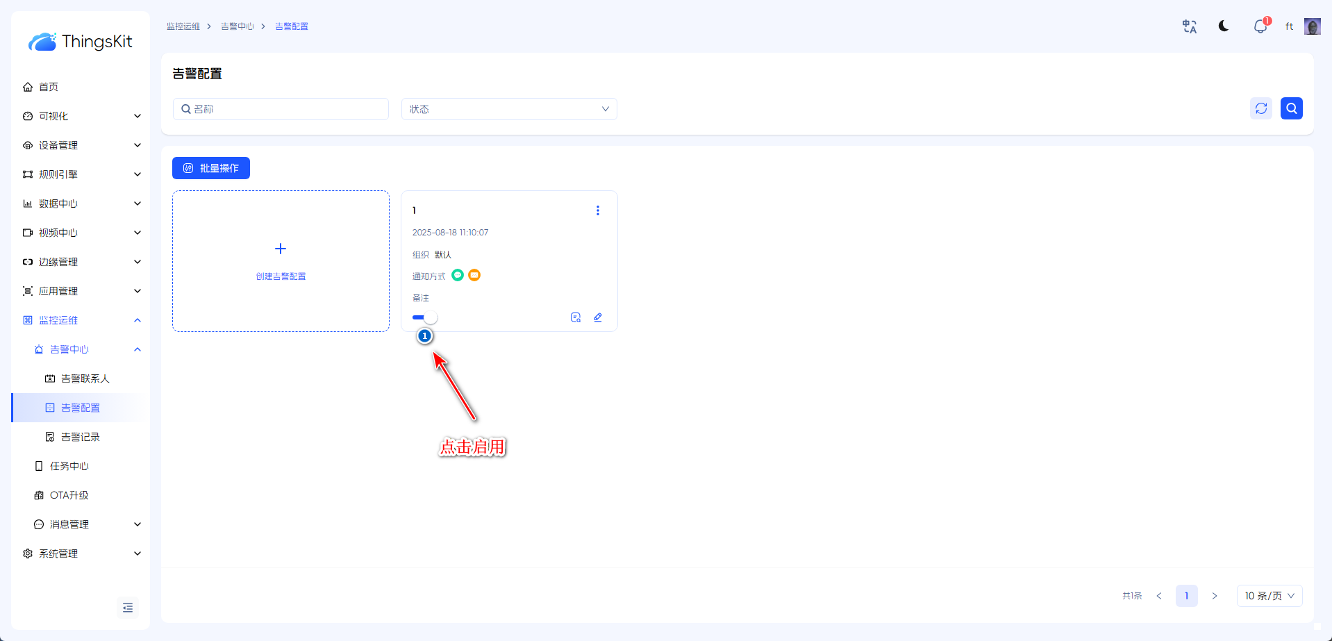 启用告警配置,场景联动配置了该告警配置才会生效。