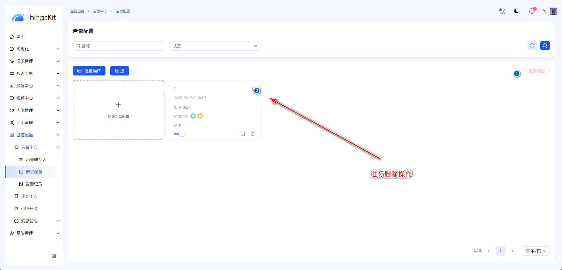 用此告警配置绑定的场景联动存在时,告警配置启用时,都不可删除此数据。