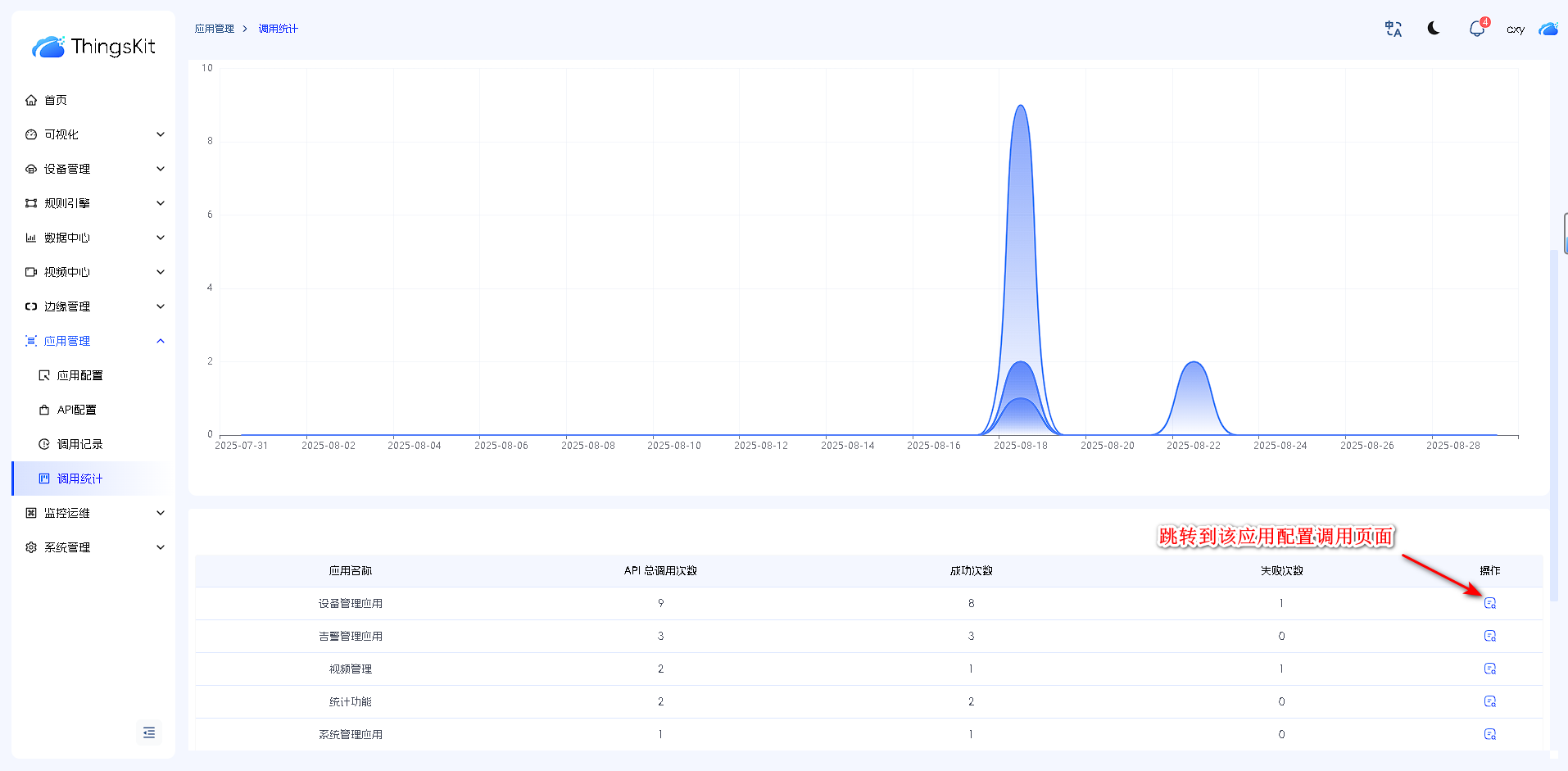 在列表显示中,可直接选择应用来跳转到调用记录界面查看。