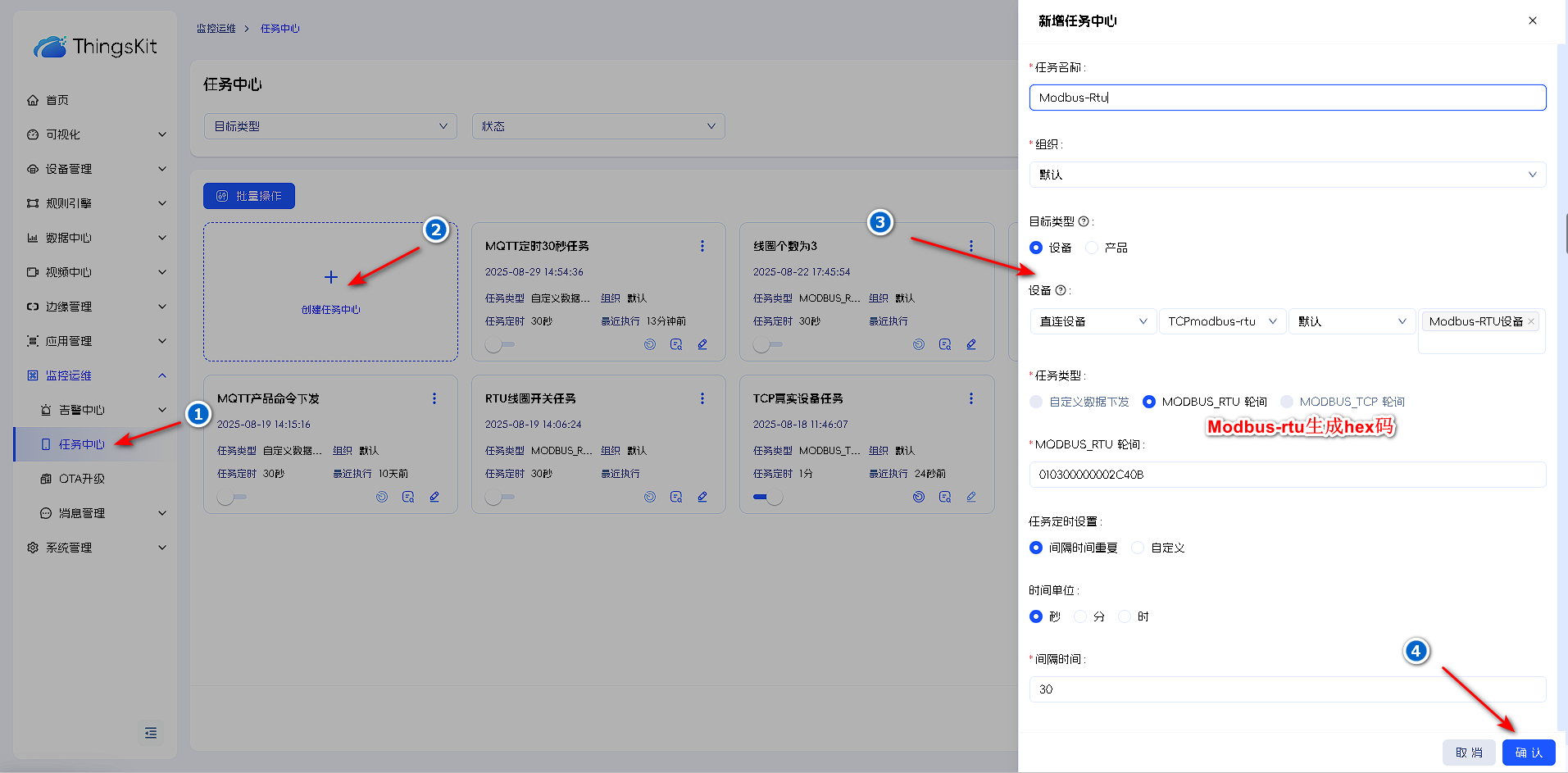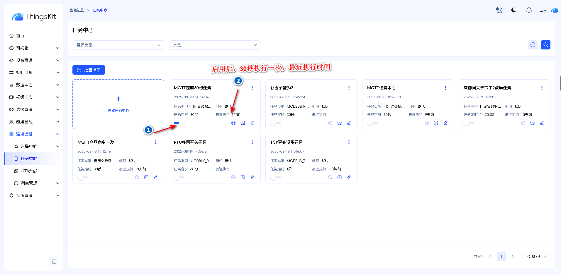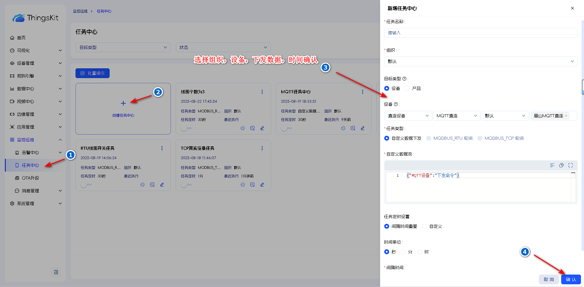 ThingsKit物联网平台中的任务功能非常有用,可以以间隔时间和周期时间为触发器,设定各种定时任务: