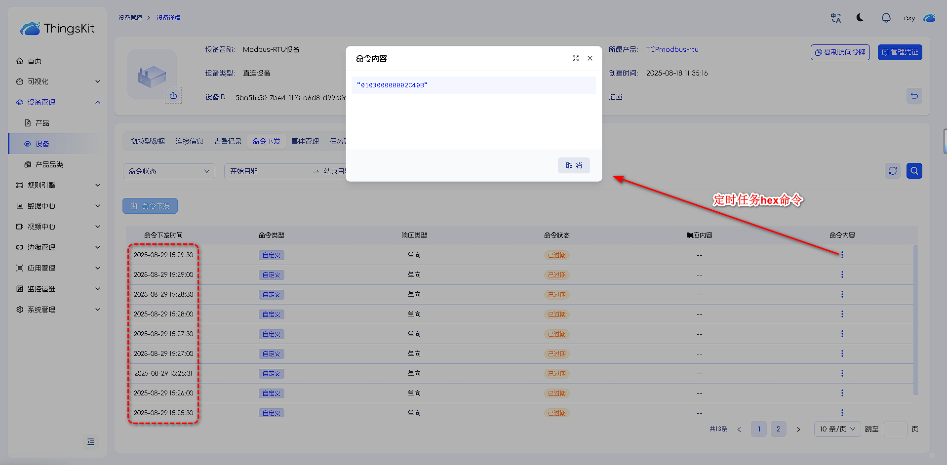 运行后的任务在设备中查看的记录。任务没有接收,显示已过期。