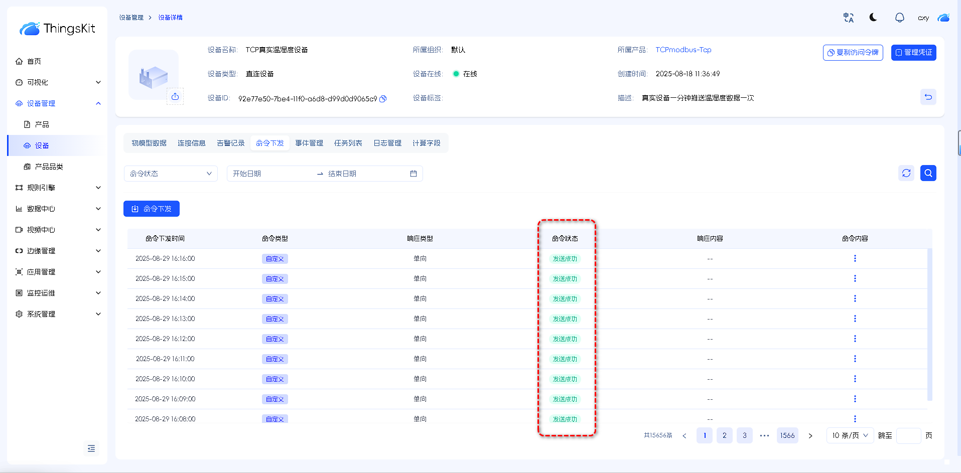 运行后,可到任务中心选择的设备中进行查看运行效果及数据。