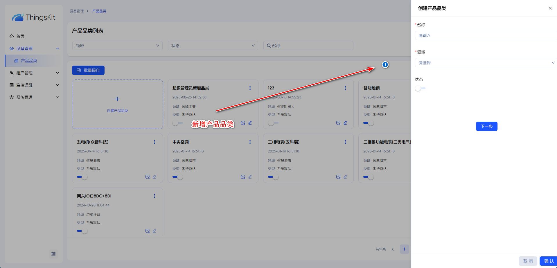 产品品类用于区分产品所属领域,并在产品引用时便于区分和使用。超级管理员账号默认有许多产品品类供租户选择使用。