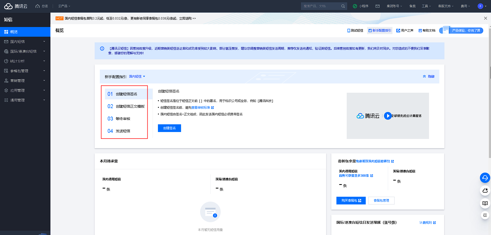 腾讯云短信开通流程