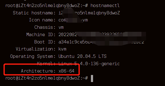 hostnamectl 命令执行结果如下,红框内的是CPU信息: