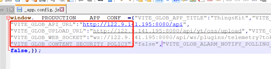 sed -i 's/"VITE_GLOB_CONTENT_SECURITY_POLICY":"false"/"VITE_GLOB_CONTENT_SECURITY_POLICY":"true"/g' _app.config.js修改后配置文件效果图