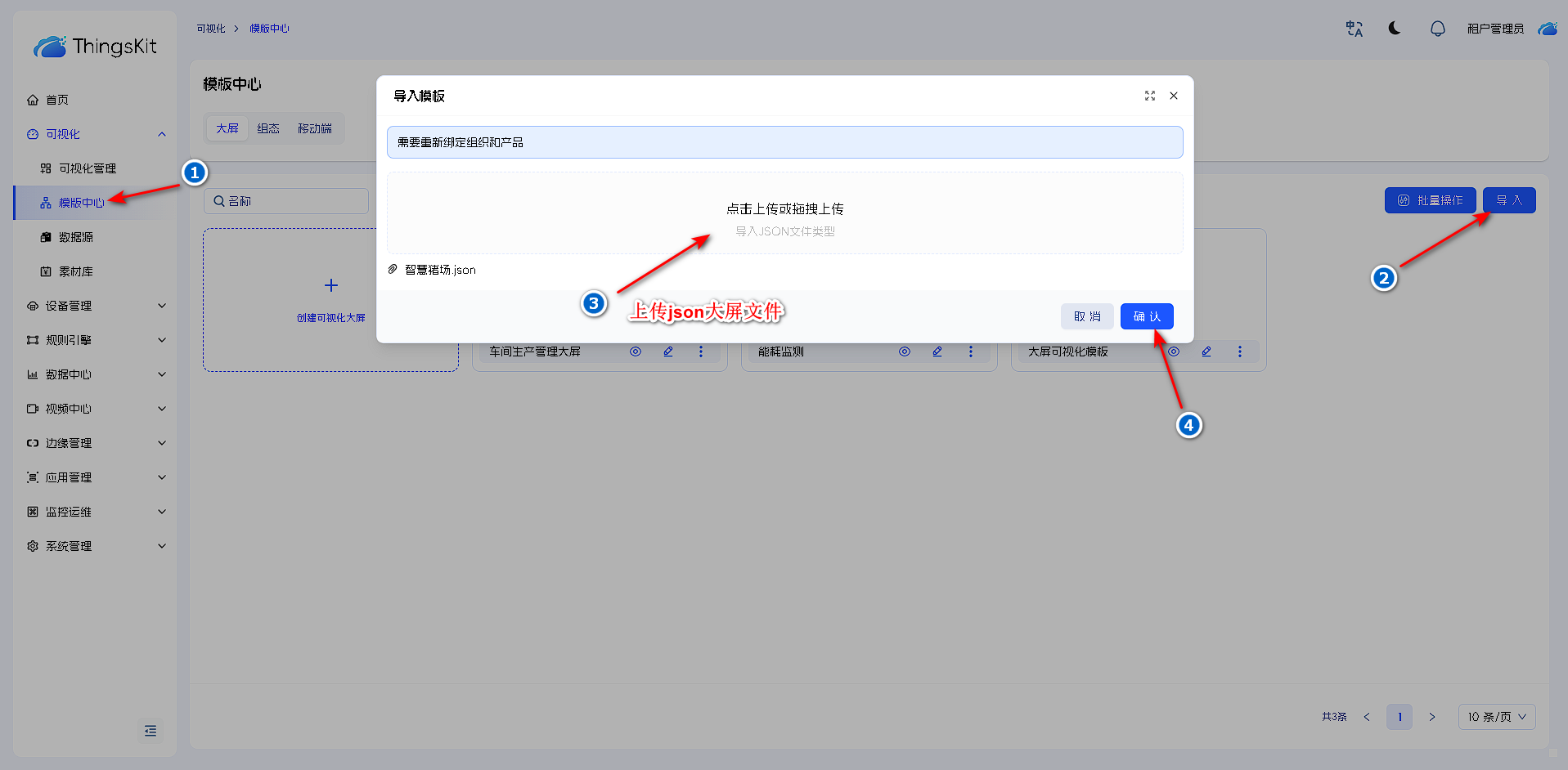 平台导入大屏时,数据为json并要与格式保持一致,否则导入的大屏json错误导致界面显示为空白,所有大屏导入操作时最好先设计好大屏后进行导出功能,方便后续使用。