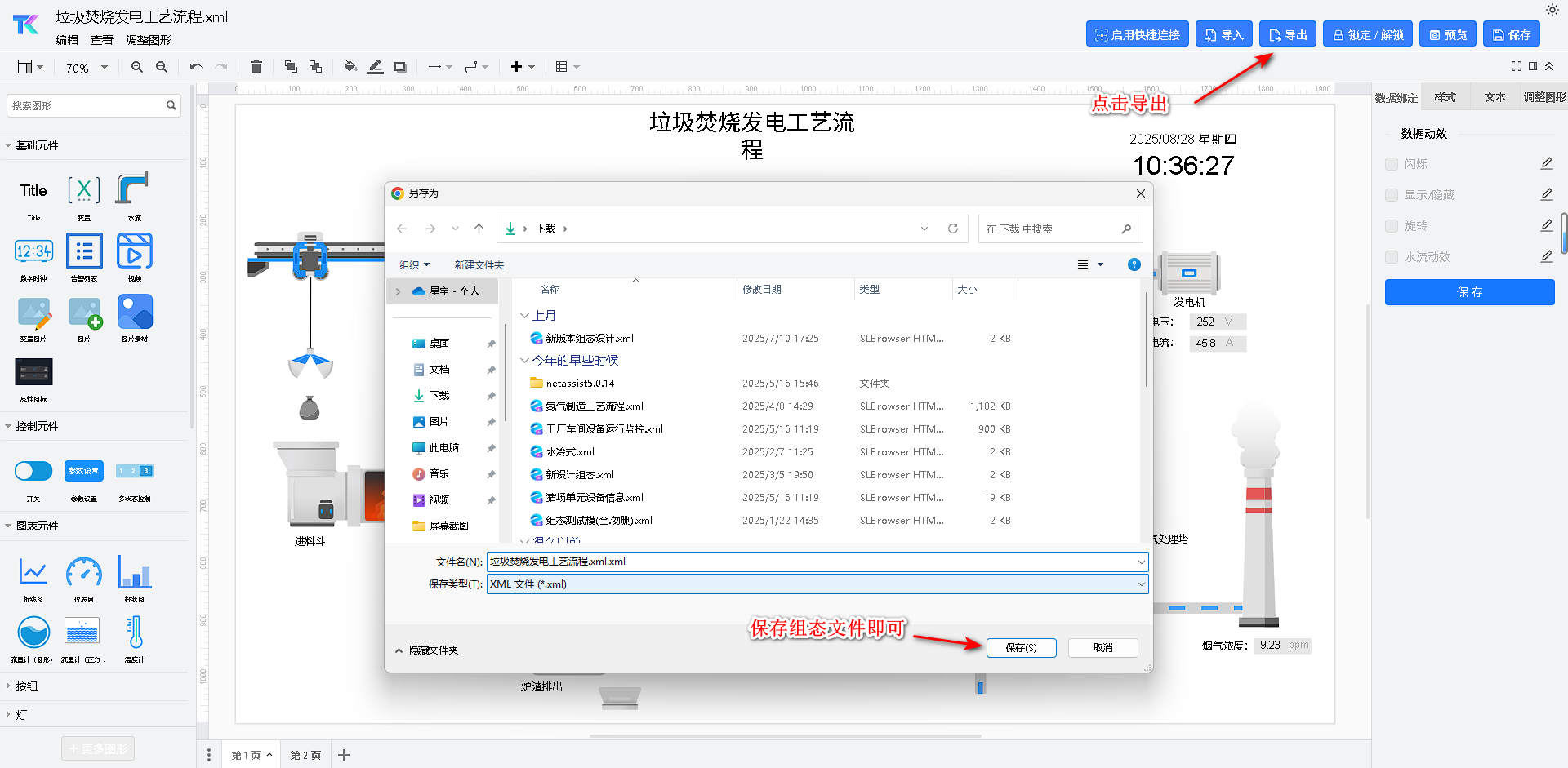 当用户自行设计新的组态后,为了方便后续使用,可以直接导出保存到本地。