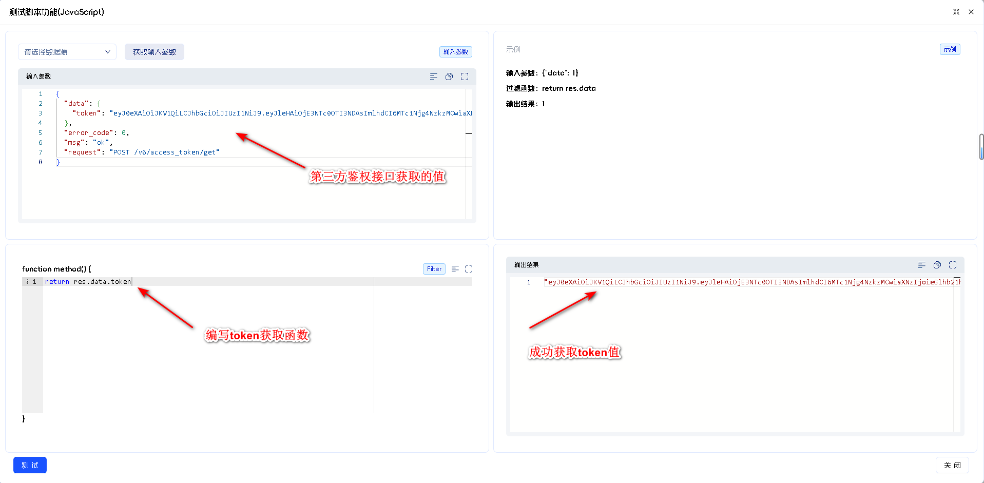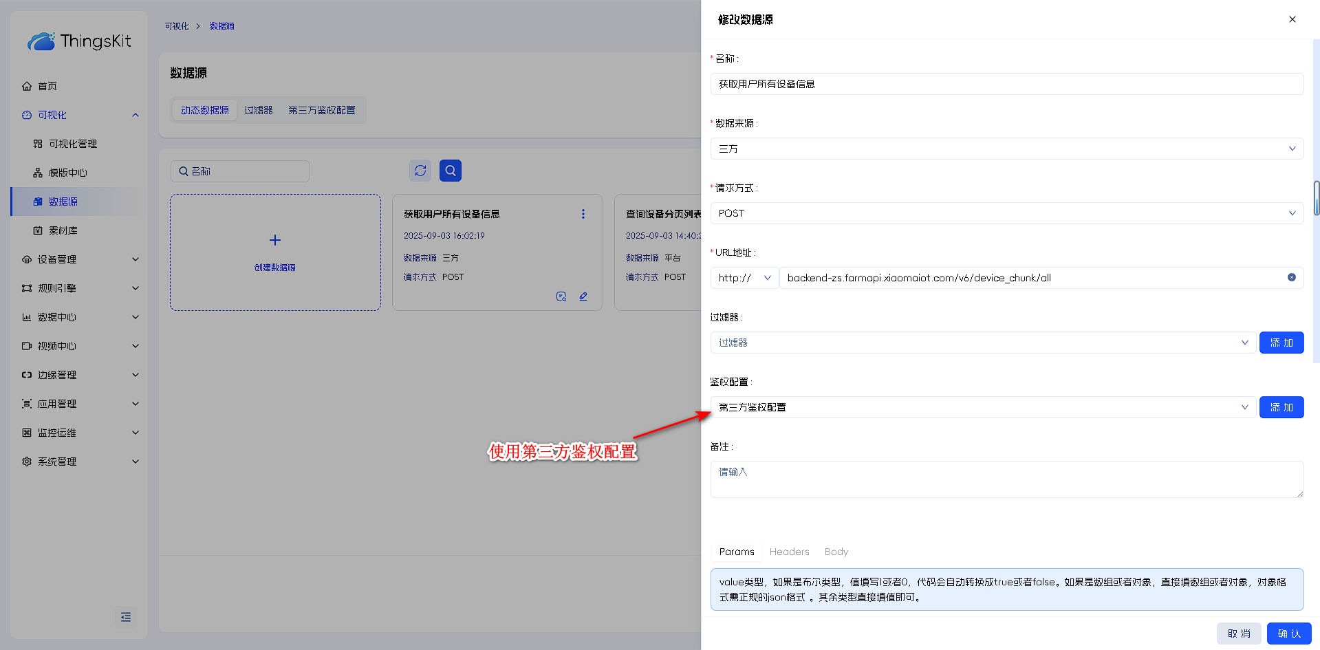 动态数据源请求其它功能接口,需要第三方鉴权的token进行授权才行,如下图。