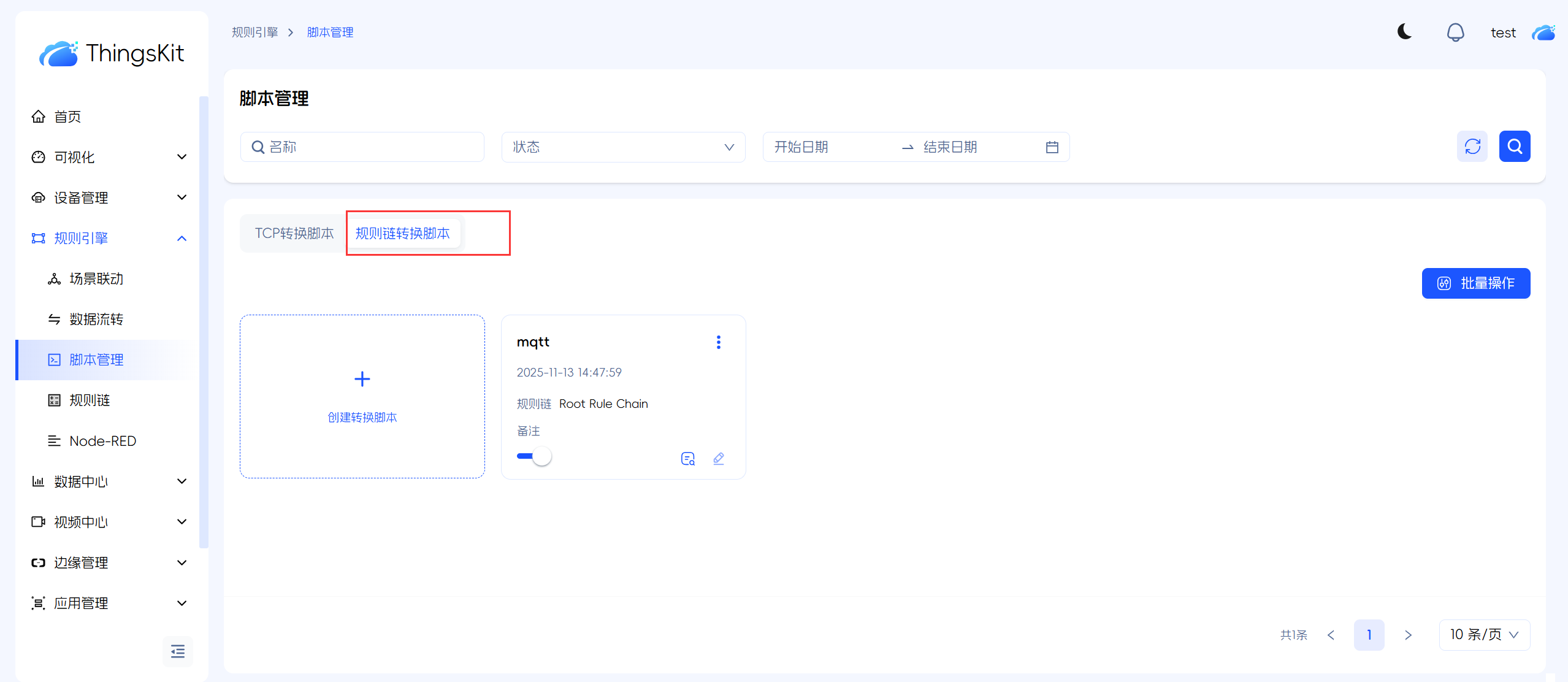 当不符合平台的mqtt协议设备接入平台时,可以使用规则链转换脚本,但仅支持作为直连设备上报,不支持网关+网关子设备方式上报。