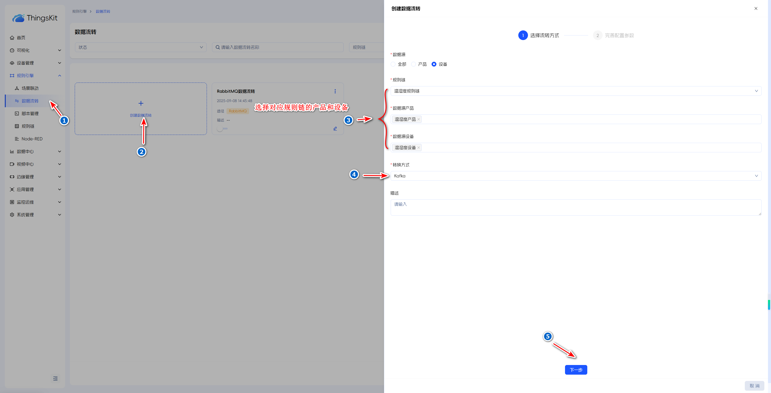 数据流转是规则引擎中处理和转换数据的常见方式。用户可以通过RabbitMQ、Kafka、MQTT、Rest Api这四种方式,将想要的数据转发出去。同时用户可以在 规则链 里面将脏数据行过滤、清洗等操作,以提高数据的质量、提高数据分析的准确性、增强数据的价值、减少冗余和重复数据。