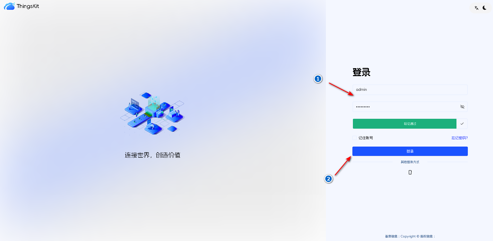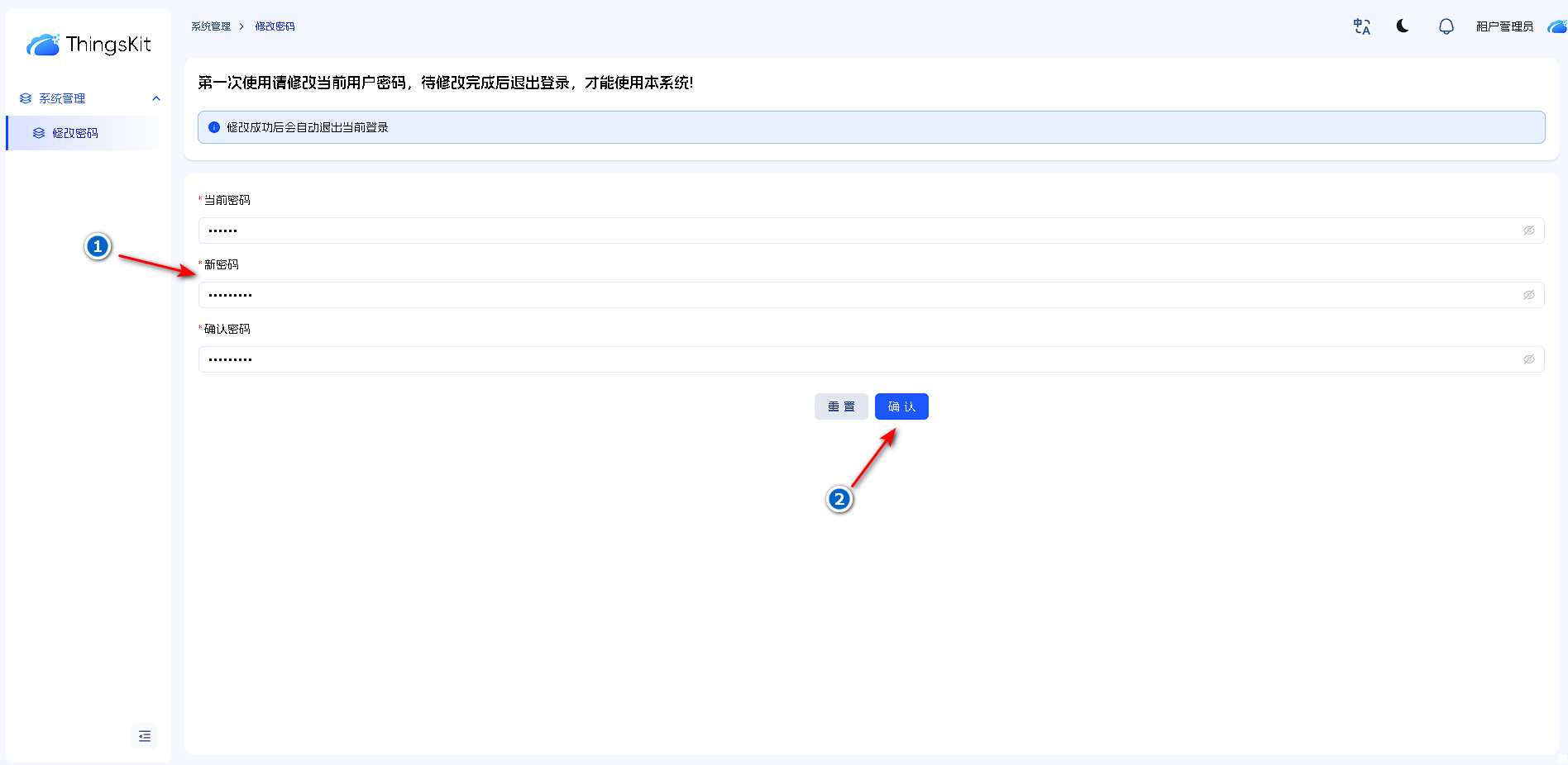 修改密码成功后,从平台登录页通过账号和密码进行登录。