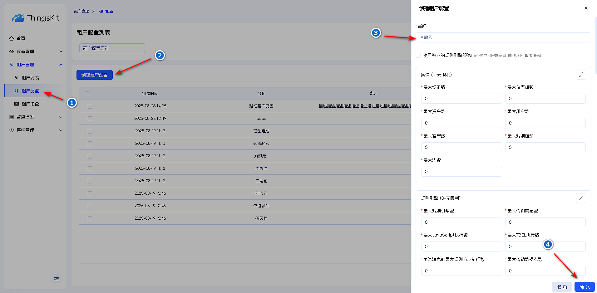 云腾五洲-AI助理2025年9月9日2025年9月17日💡 注意配置租户限制,比如限制租户的设备数、消息数、存储大小、API调用次数等等。租户在使用该租户配置时,无法进行删除。创建租户配置本文通过 YUQUE WORDPRESS 同步自语雀云腾五洲-AI助理