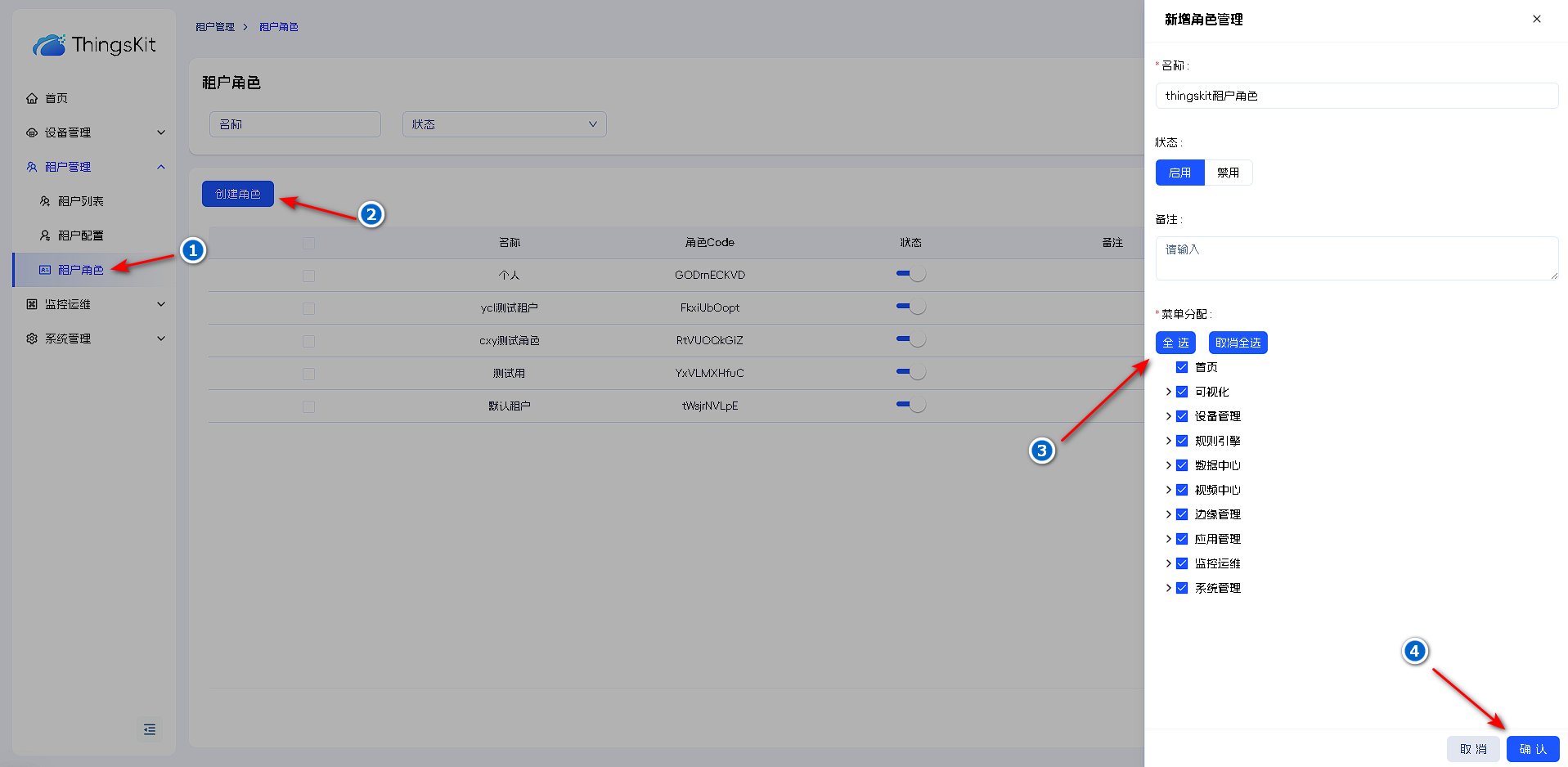云腾五洲-AI助理2025年9月9日2025年9月17日💡 注意 超级管理员登录才能创建。租户对租户账号内的角色定义,可为指定租户分配菜单或按钮权限。租户在使用该角色时,无法进行删除。创建租户角色本文通过 YUQUE WORDPRESS 同步自语雀云腾五洲-AI助理