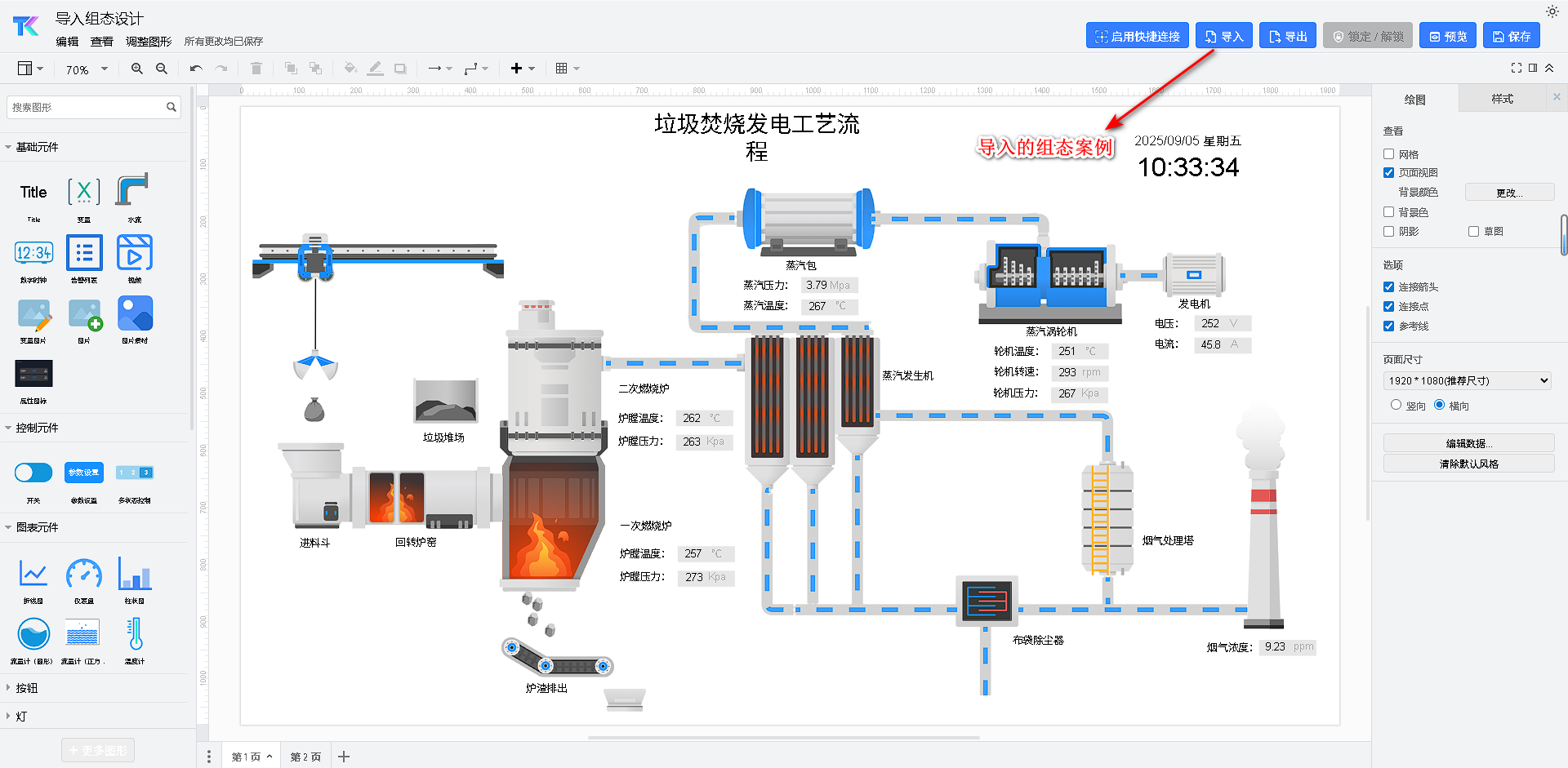 组态导入导出的功能主要是允许用户将模板从一个可视化组态中移动到另一个ThingsKit平台的可视化组态中。