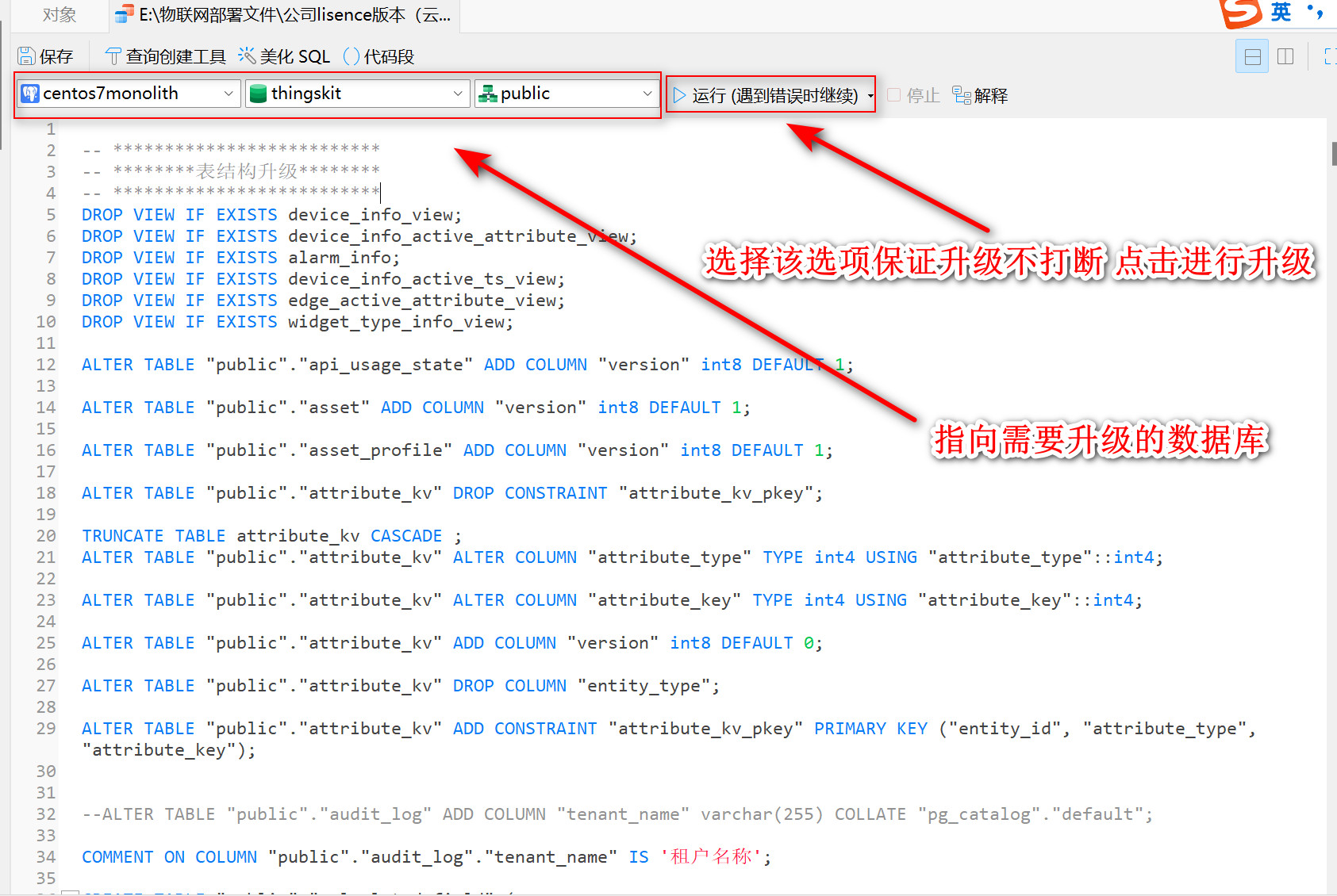 如果执行升级sql时有报错中断,请继续手动往下执行。