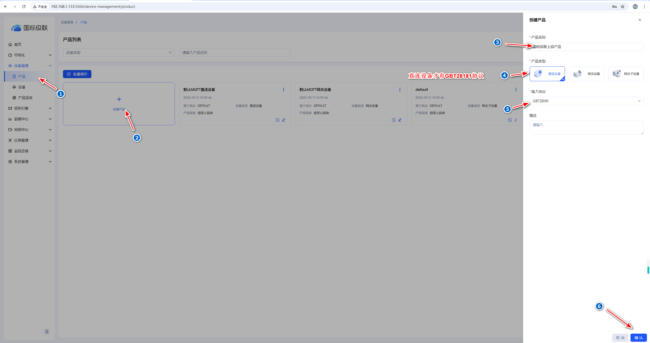 上级创建产品和设备