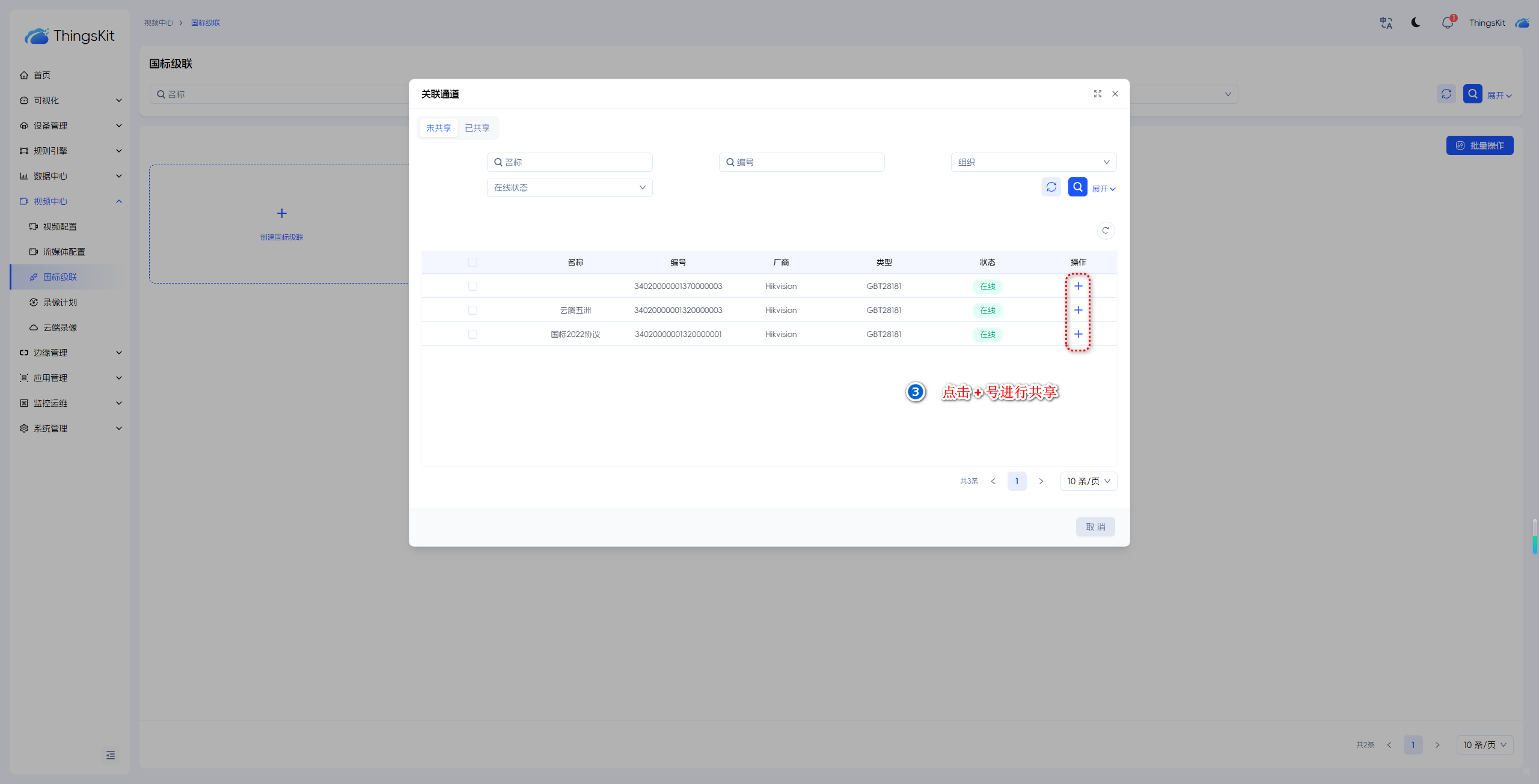 如果上级平台为ThingsKit,需先在上级平台把设备添加好