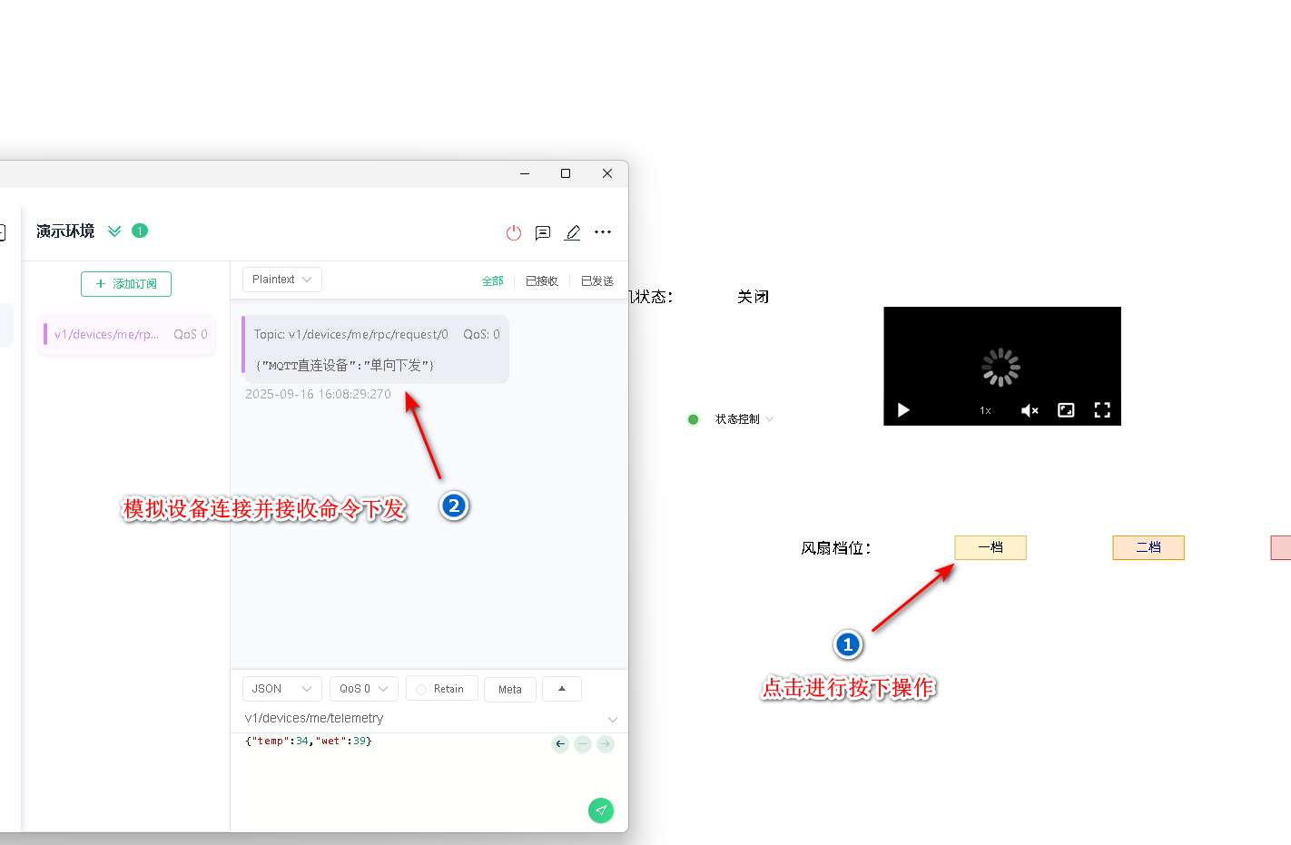 - 在下发表格中,选择设备,单向/双向为单向;填写下发的属性及属性对应的值;直接单击“保存”即可。