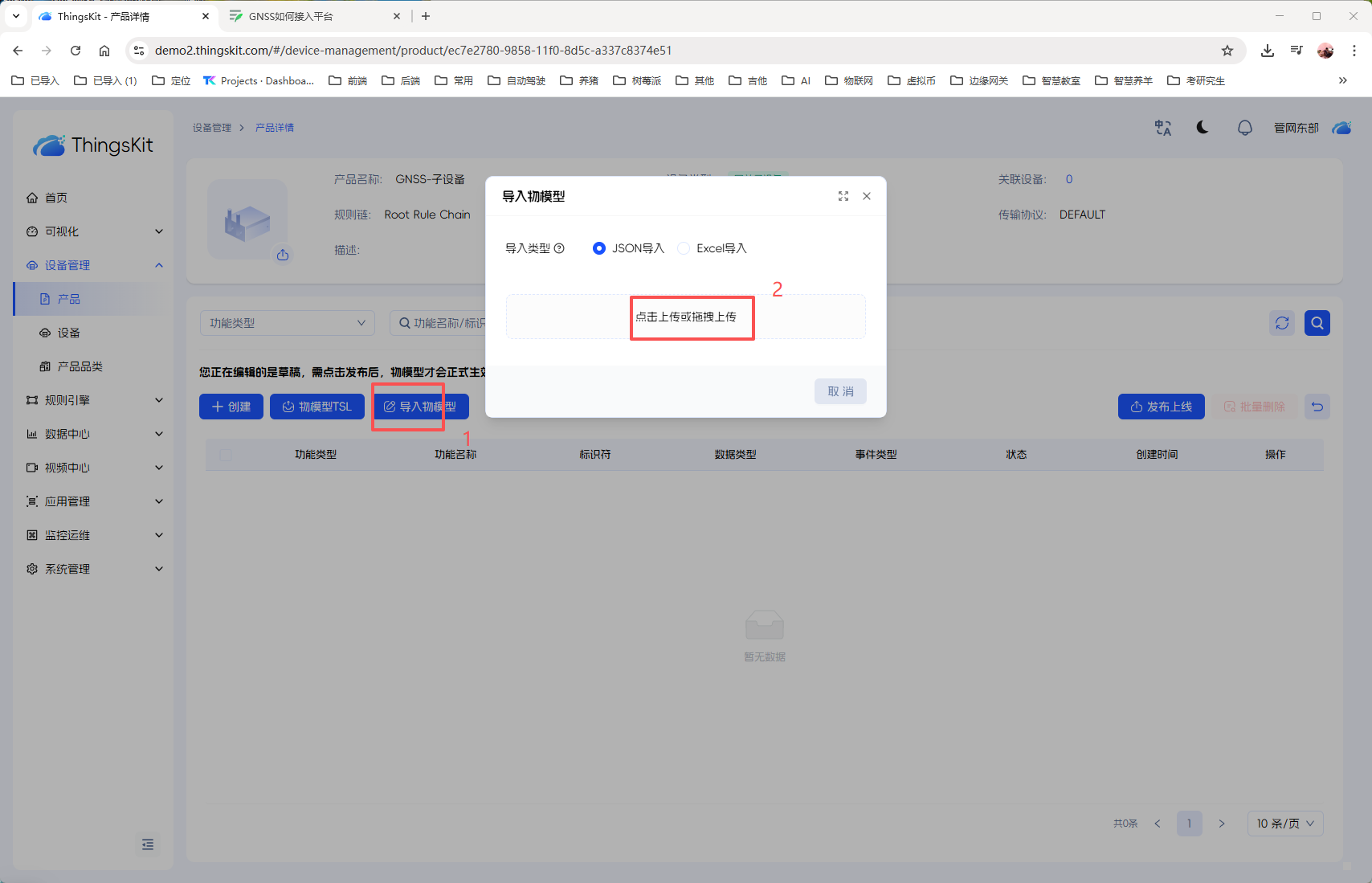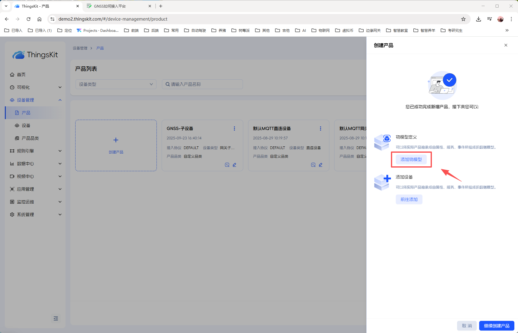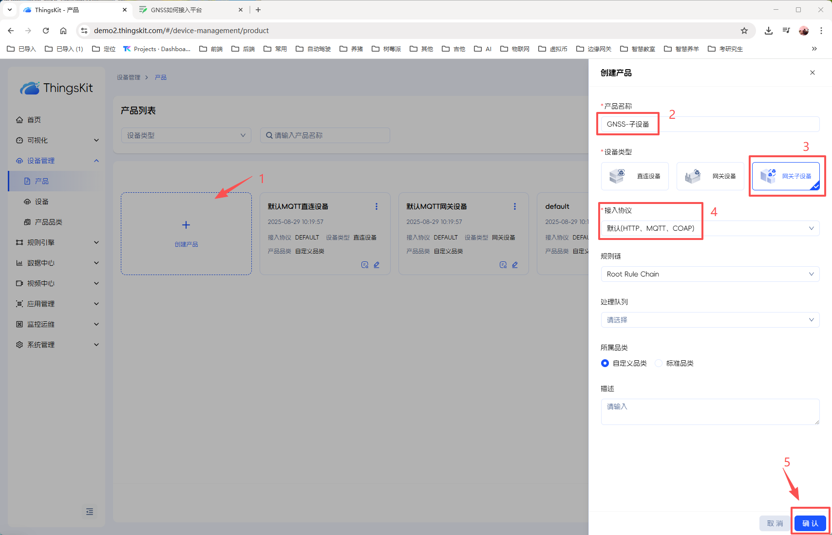 1、创建【GNSS-子设备】产品