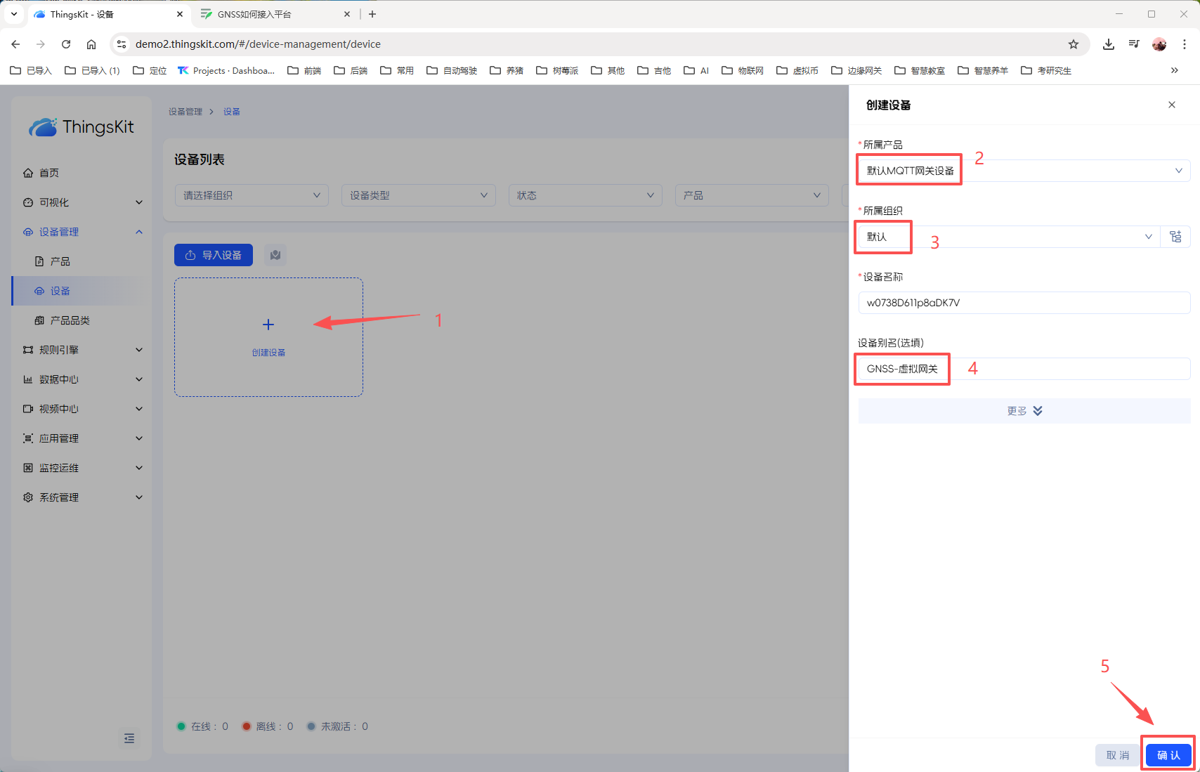 2、创建【GNSS-虚拟网关】设备