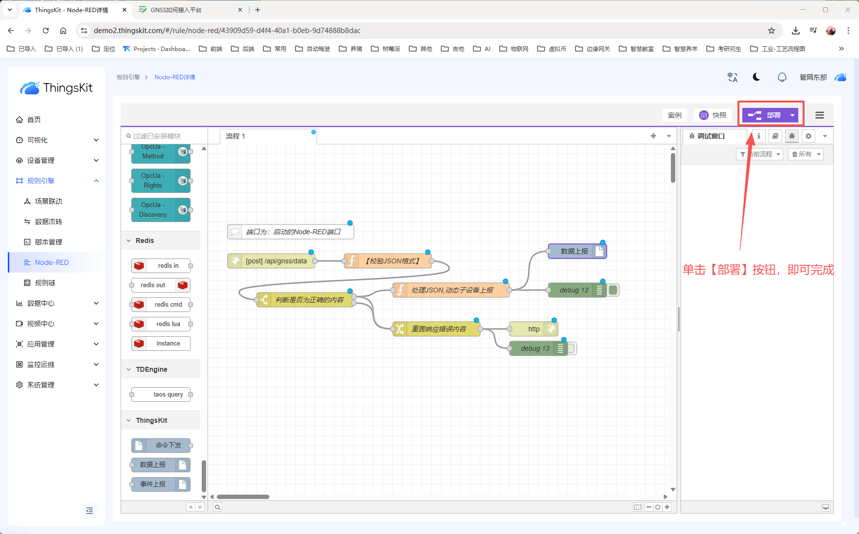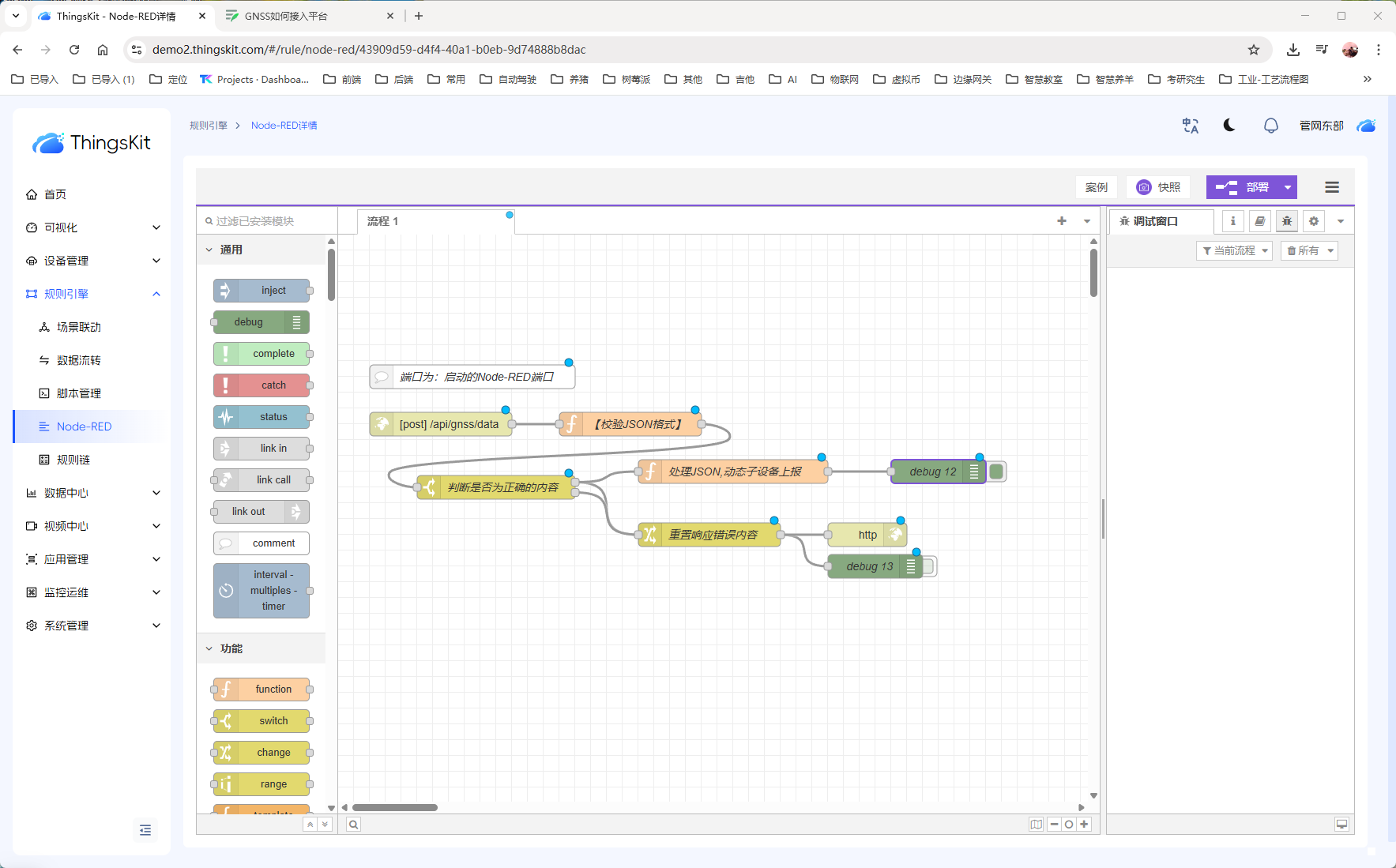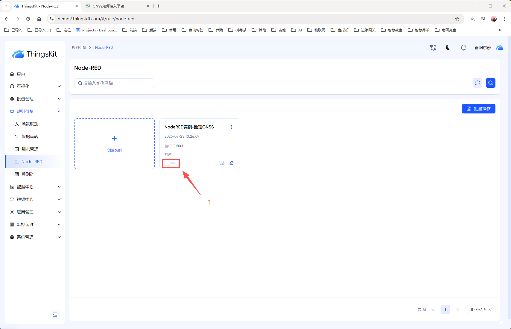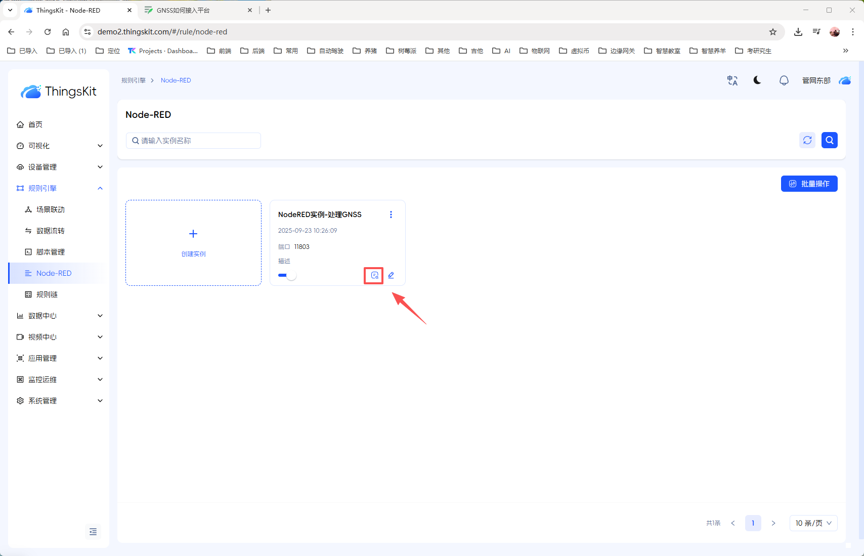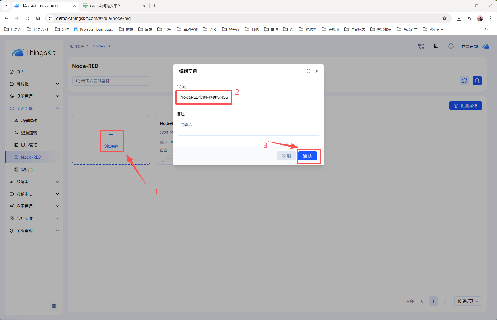 3、创建【NodeRED实例-处理GNSS】