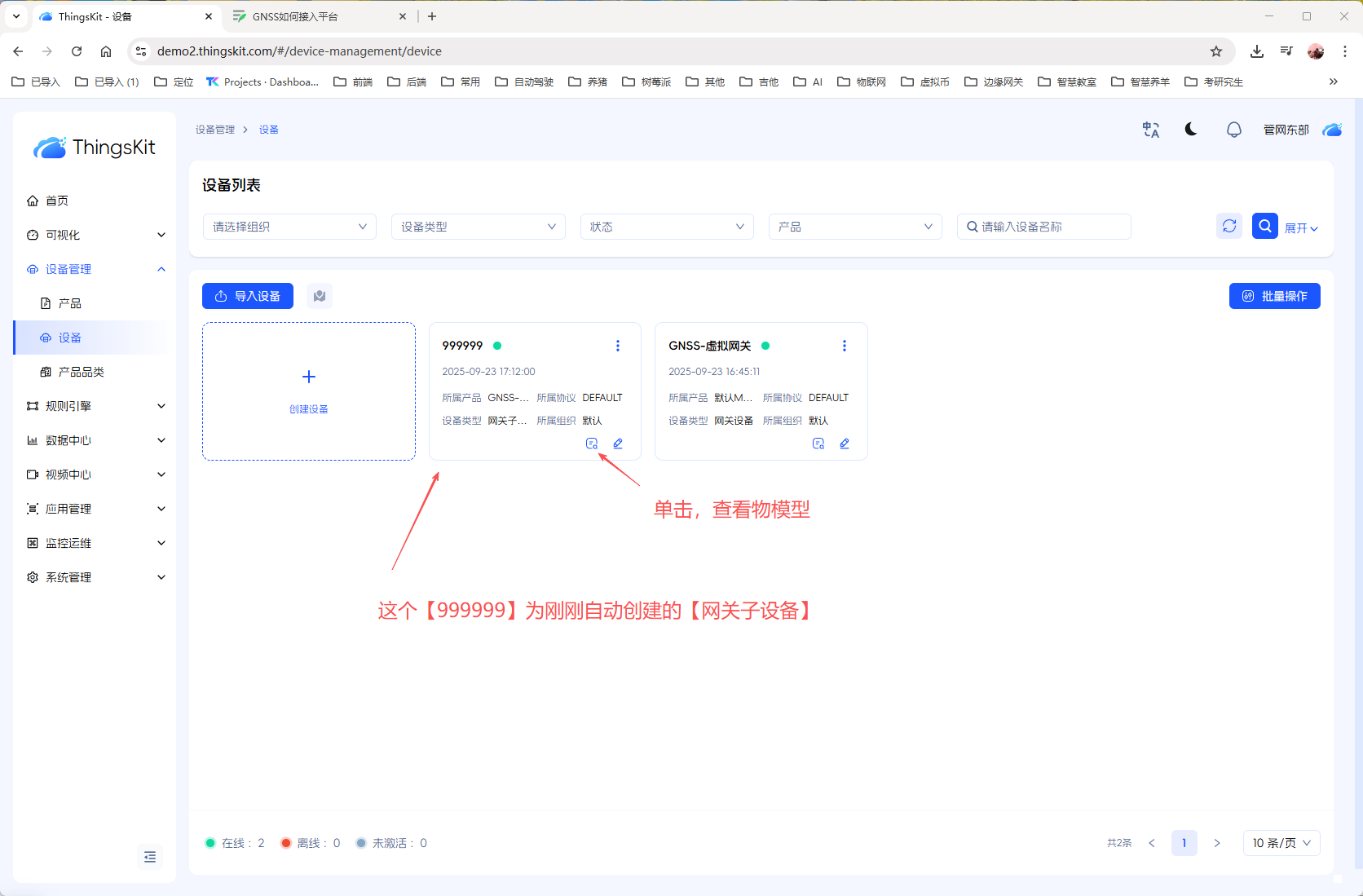 使用虚拟网关+子设备上报的最大好处是可以动态创建,每个GNSS设备,无需关心GNSS有多少台,只要发送数据来,即可自动创建GNSS设备。