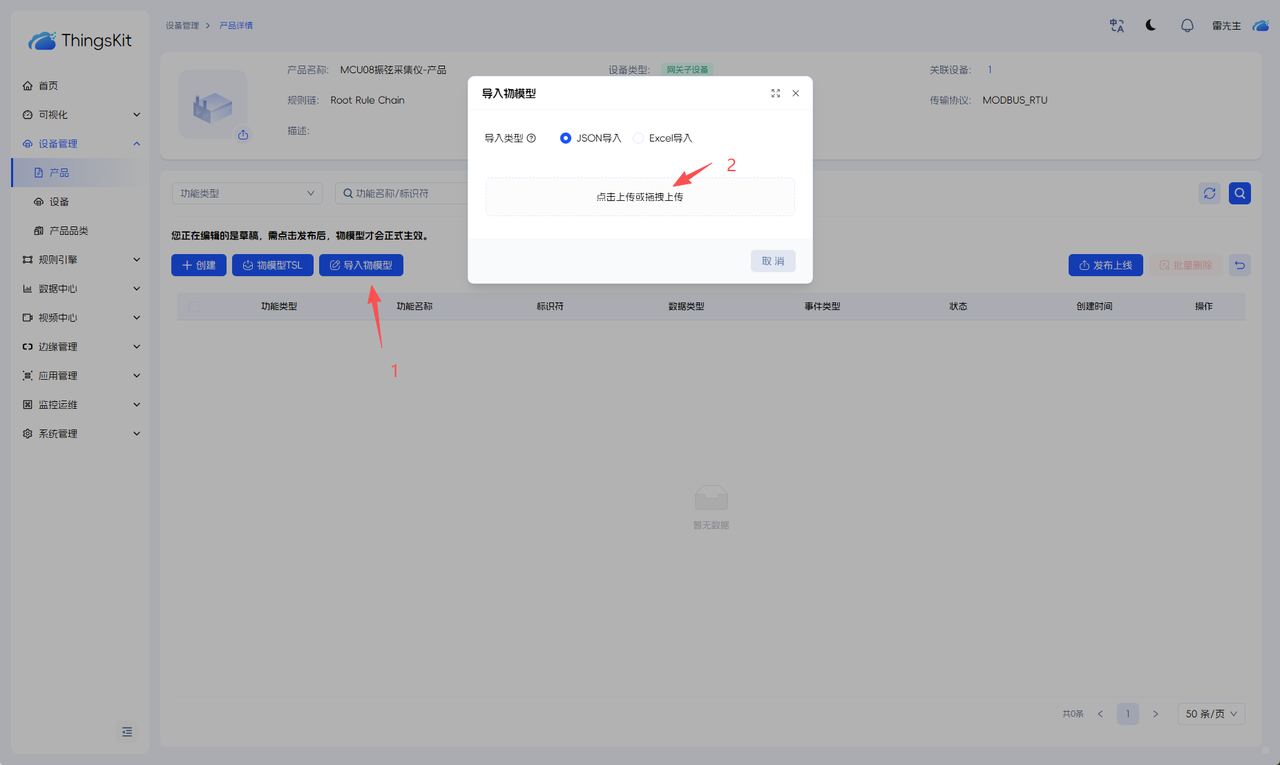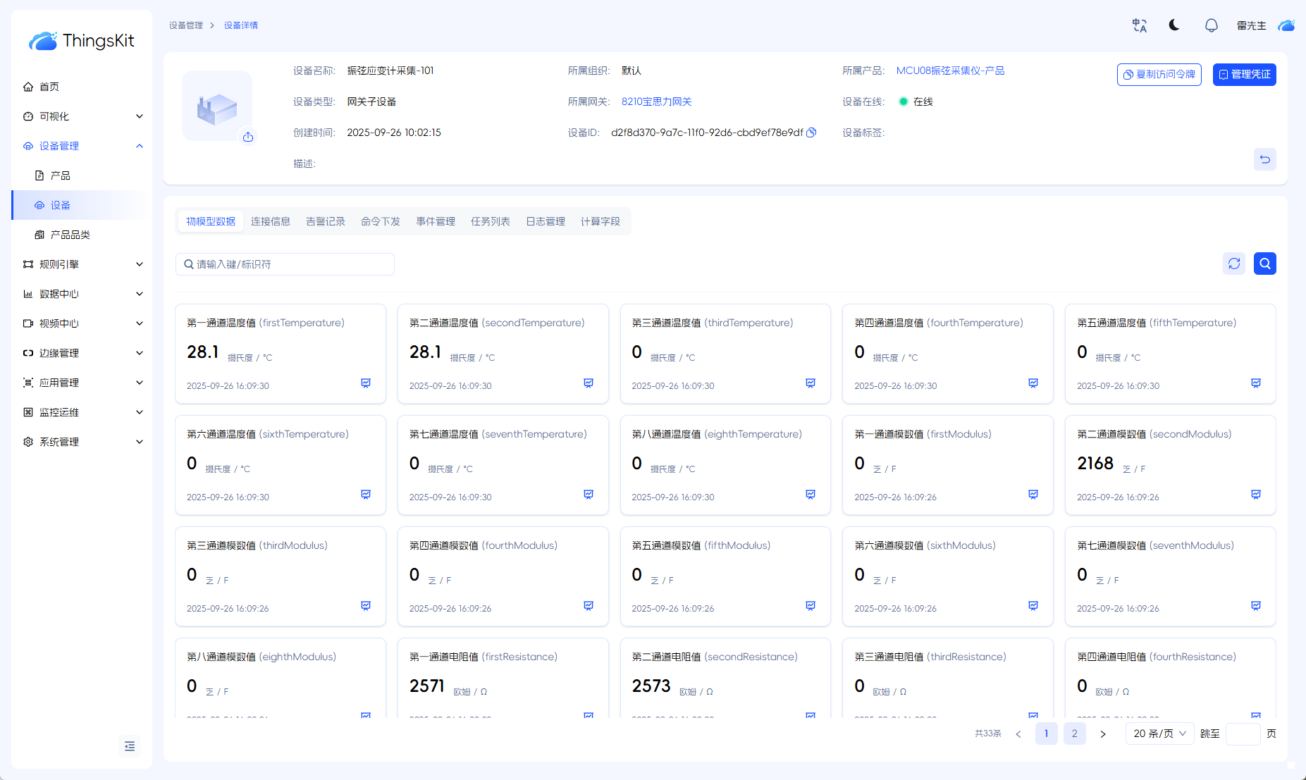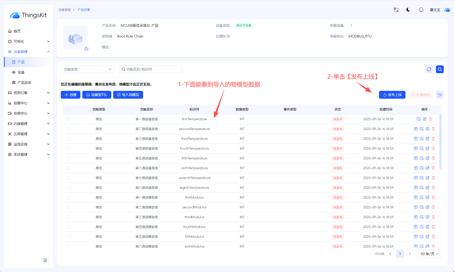 2-2-1、创建【振弦采集仪MCU08】网关子设备-产品