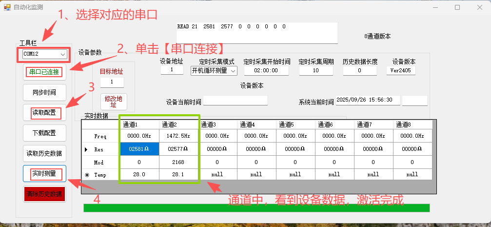PS:必须先接上传感器,再使用厂家提供的软件,进行激活一次。否则无法采集到数据。