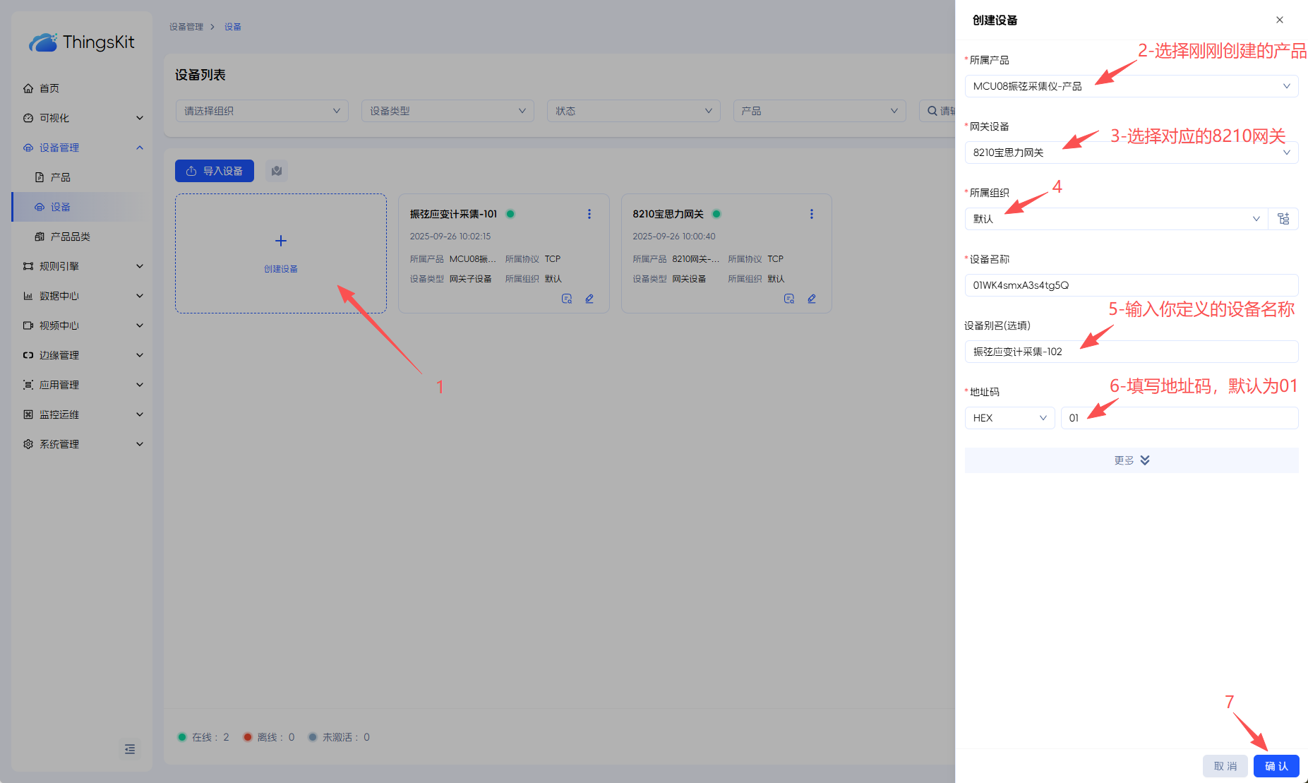 2-2-2、创建【振弦采集仪MCU08】网关子设备