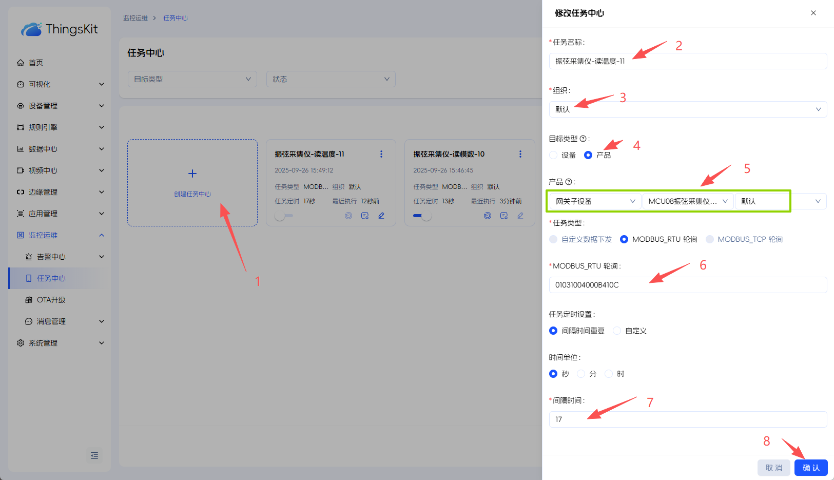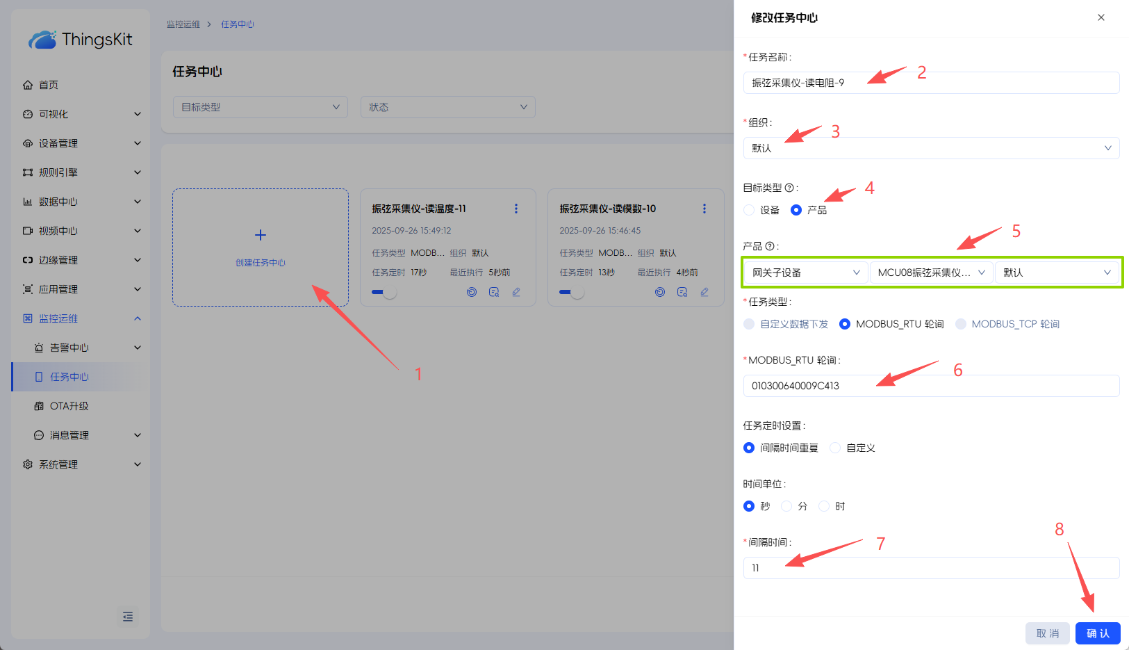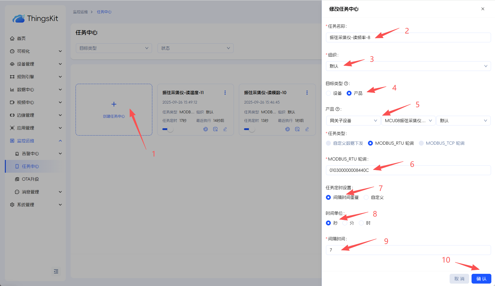进入任务中心,为振弦采集仪,设置轮询采集命令