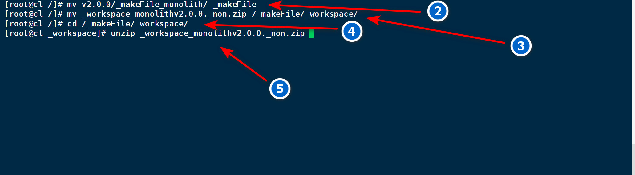 unzip _workspace_monolithv2.0.0._non.zip #此处仅为单机部署基础版文件